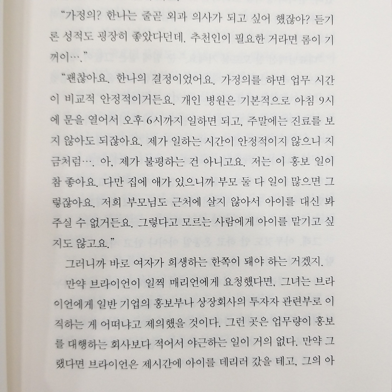 그럼에도 인간은 왜 가족을 이루려고 하고, 가정을 지키려고 하는가. 왜 가족이란 것에 집착하는가. 그 질문에서 비롯된 소설이 아닐까 싶었다. 그러나 그 질문을 던진 게 무색해질 정도로 종국에는 하고 싶은 말이 무엇인지 헷갈리는 소설이었다. 분명 가독성도 좋았고 흥미로웠고, 캐릭터도 완벽했으나, 책을 덮은 후 무슨 말이 하고 싶었던 건지 도무지 알 수가 없었다.