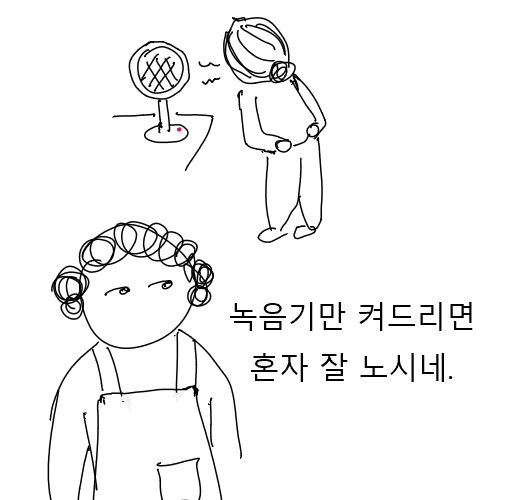 "그동안 내 녹음은 어느 정도 정리가 되었니? 어떤 내용인지 궁금하구나."