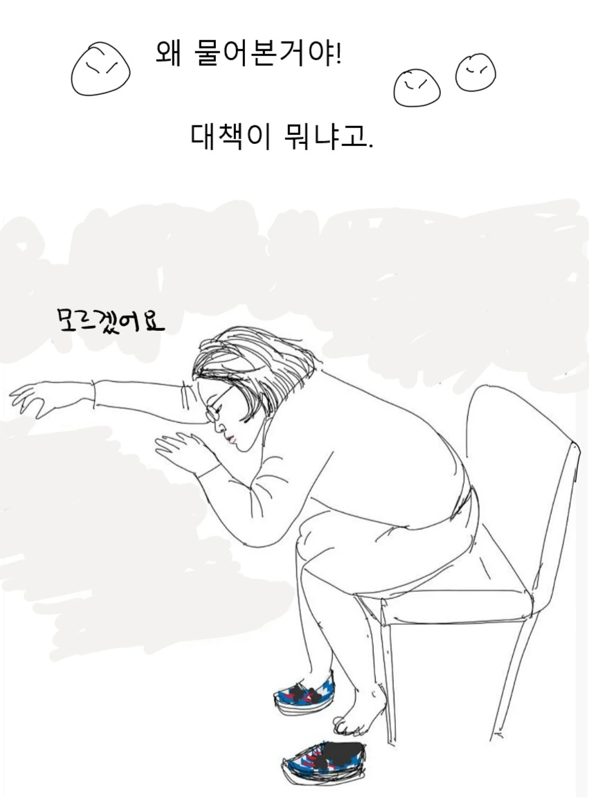 이제 우리는 현실을 알았다. ‘질문’이 좋다는 말에 그만, 질문을 하면 사람들이 귀를 기울여주고 박수라도 받는 걸로 착각을 했던 것이다. 힘든 일이라는 것을 알았으니 구체적으로 뭐 때문에 힘든지 말해보자.