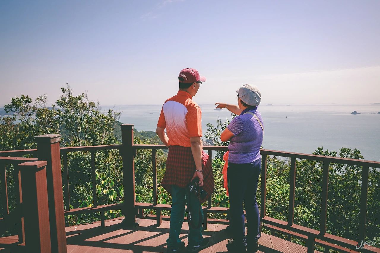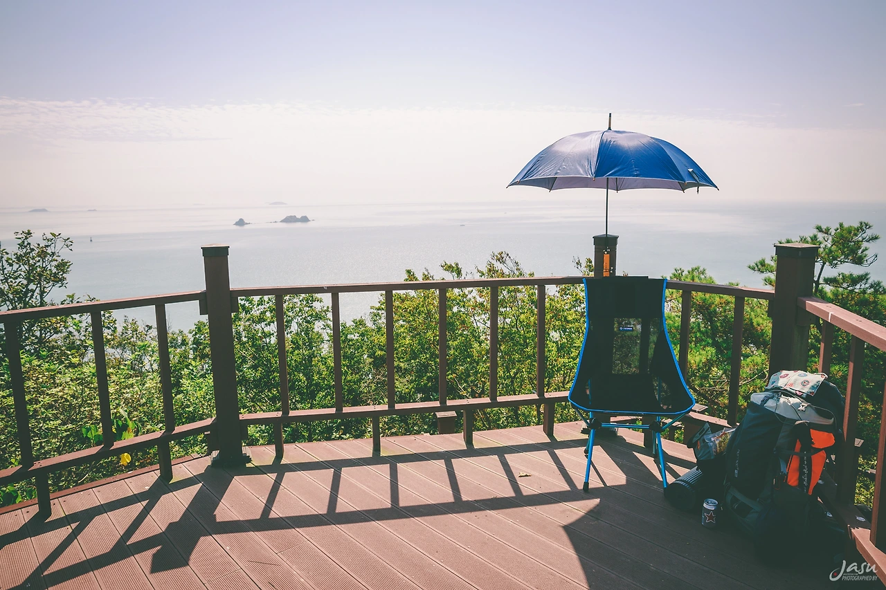 나는 신장벌 방향으로 가는 길에서 주운 우산을 데크에 고정하고 의자를 펼쳐 맥주 한 캔을 마시며 여유롭게 시간을 보냈다. 전망대 위치가 매우 좋아서 이곳을 사이트로 정할까 싶었지만 다른 사람들이 올라오면 민폐이고 가의도의 다른 곳도 구경하지 못한 상황이라서 그렇게 할 수는 없었다. 더욱이 텐트를 치기에는 너무 이른 시각이었다.