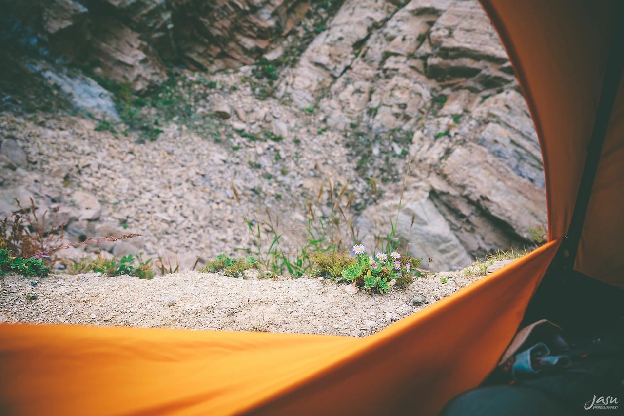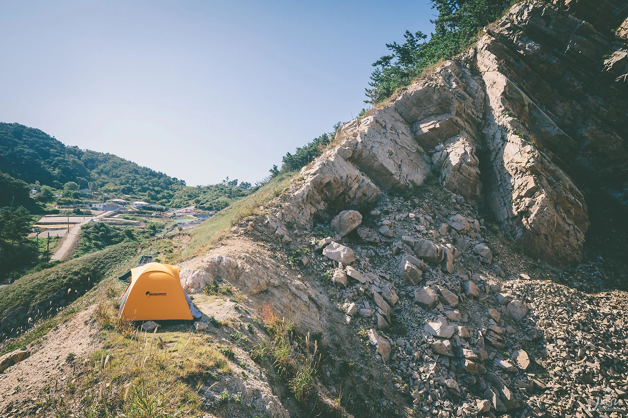 무거운 몸을 이끌고 내려와 보니 그 작은 해안에는 먼저 텐트를 친 연인이 있었다. 나는 주위를 둘러보았다. 조금 가파른 언덕 위에 텐트 하나 설치할 공간이 있을 것 같았다. 나는 배낭을 메고 그곳으로 올라갔다.