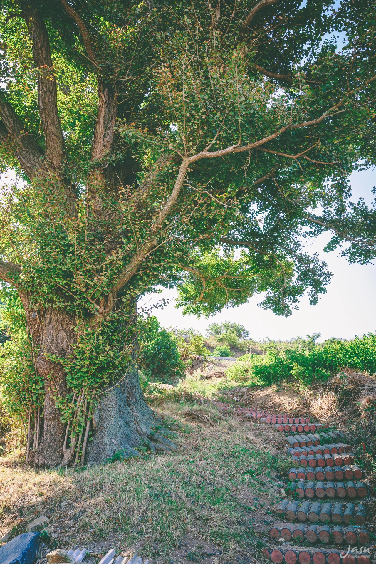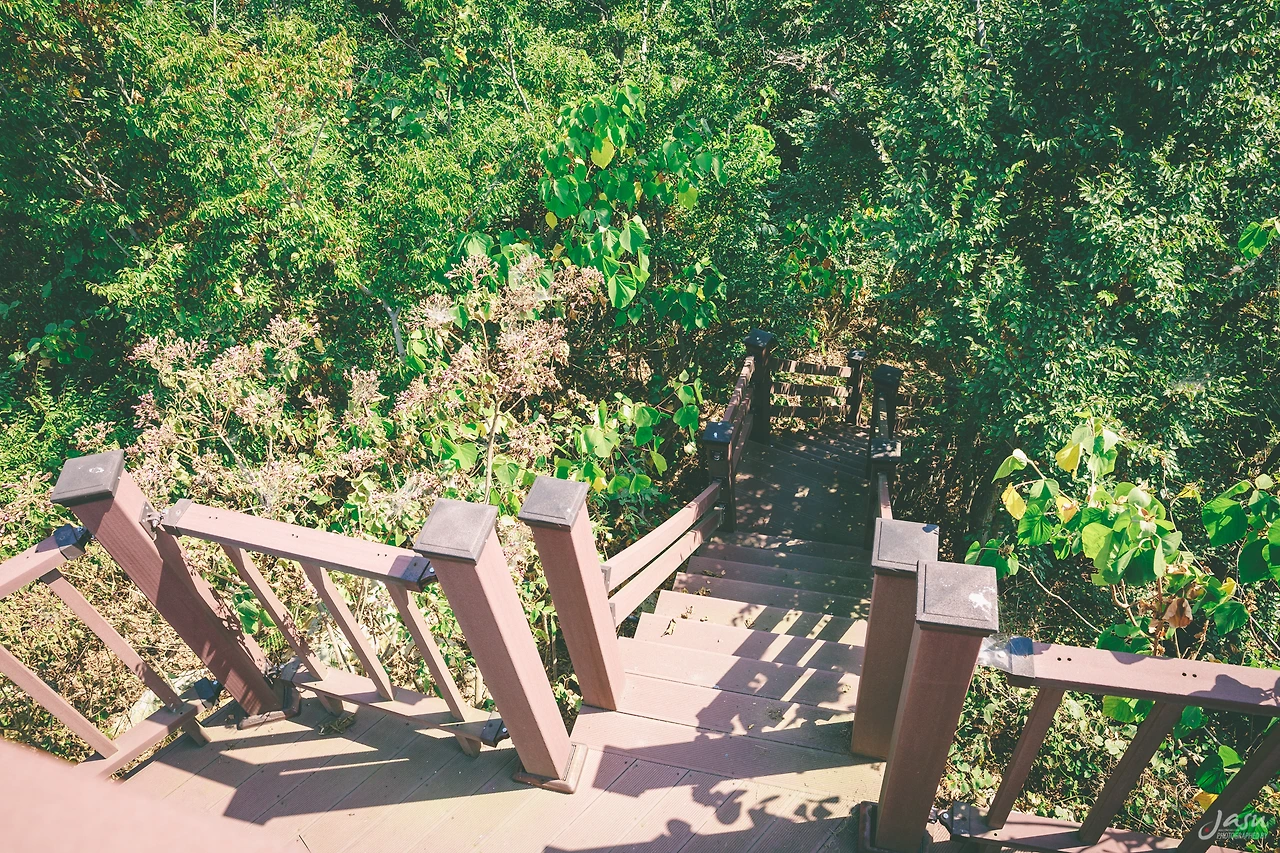 나는 다시 마을 푯말이 있는 곳으로 되돌아와서 작은작돌, 전망대가 있는 곳으로 향했다. 가는 길에는 450년가량 된 마을의 수호 목인 은행나무가 우뚝 서 있다. 그 은행나무를 지나 남항 쪽으로 가다 보면 오른쪽 오솔길 입구에 전망대 푯말이 보인다. 나는 산 정상에 있는 전망대로 향했다.