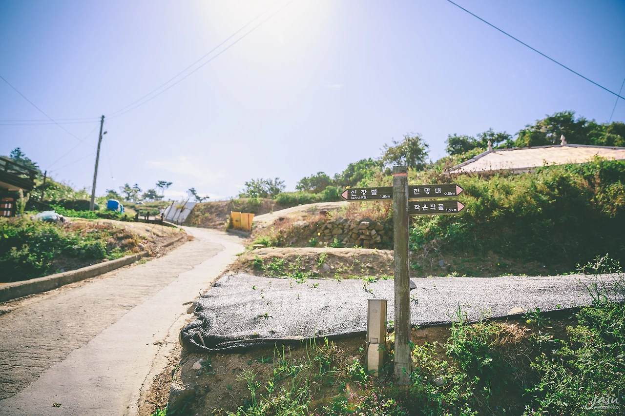 나는 동네 길을 따라서 한 바퀴 돌아볼 요량으로 북항에서 마을로 향하는 길 중간 어귀에 있는 푯말을 보고 신장벌이라는 곳으로 향했다. 신장벌은 서해 같지 않은 모래사장이 멋진 곳이라고 했다. 거리도 1km 내외로 길이 험하지 않으면 충분히 갔다 올 거리라고 생각했다.