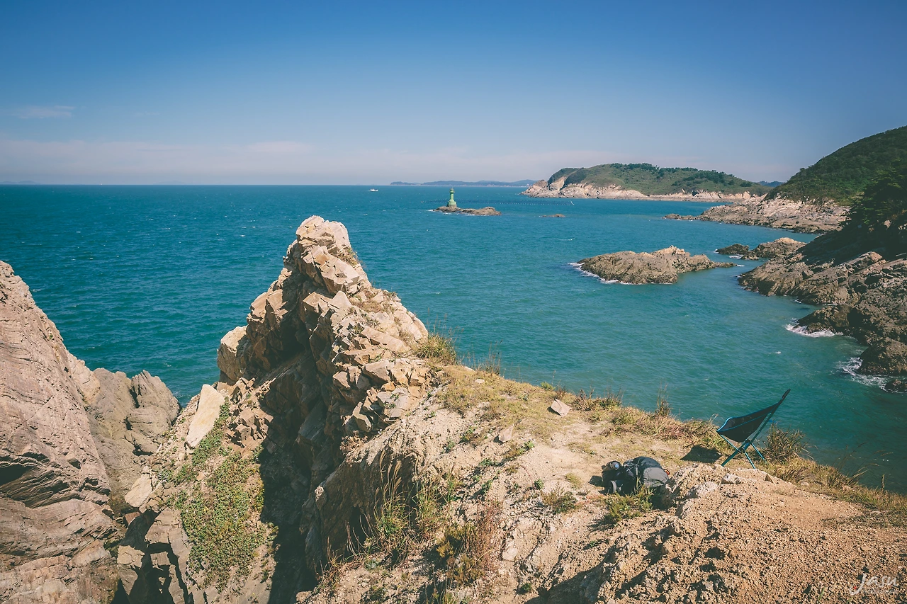 양옆으로 절벽이라 위험해 보이긴 했지만, 텐트를 설치할 공간은 충분했다. 바다 쪽으로 작은 돌 봉우리가 있어서 바닷바람을 곧바로 맞지도 않을 것 같았고 경치도 아주 멋진 곳이었다. 주변에 사람도 없고 돌산 언덕이라 뱀을 걱정할 필요도 없으니 이만하면 사이트로는 훌륭했다. 나는 이곳에 텐트를 치기로 했다.