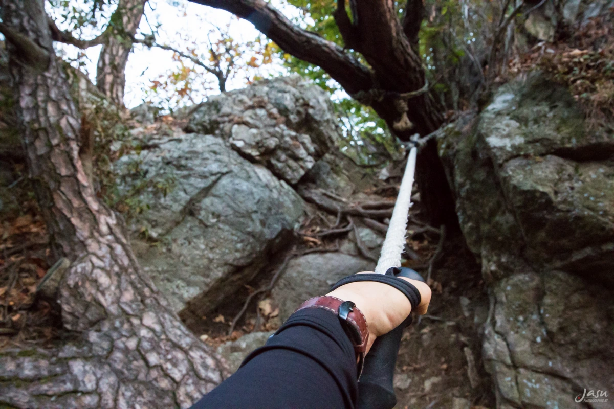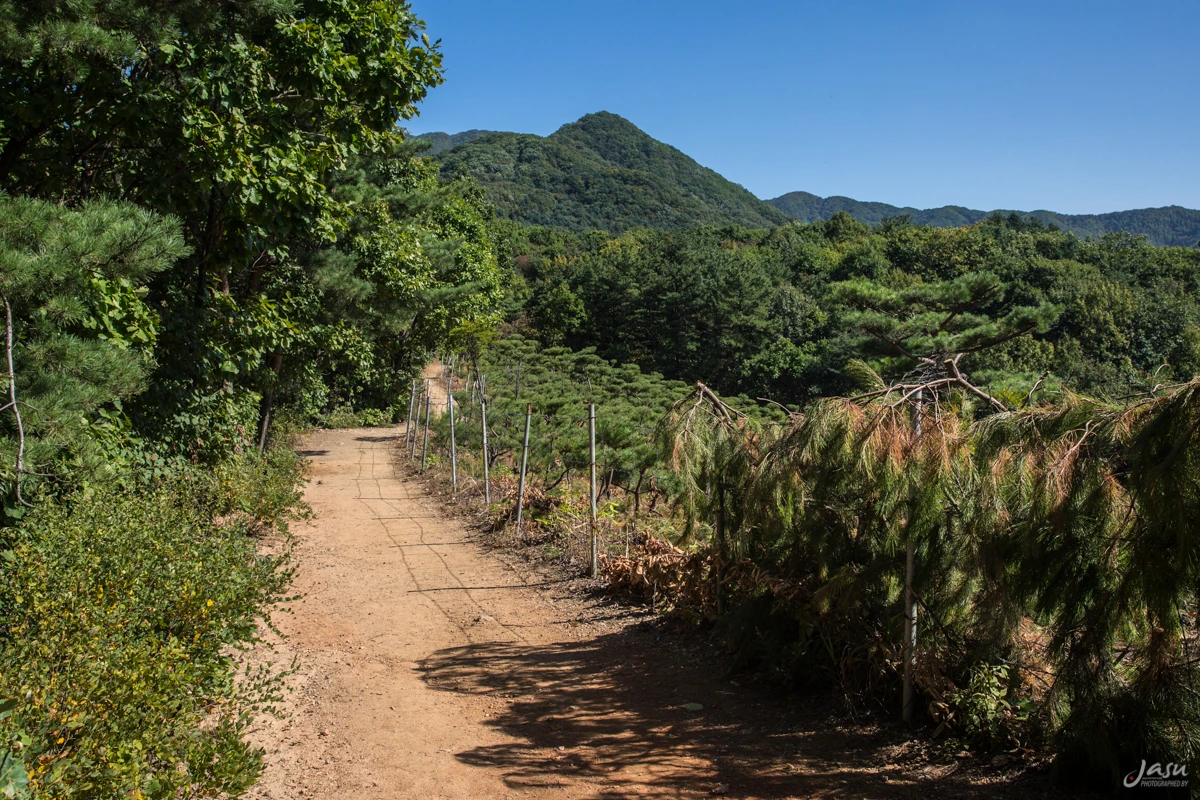 2/3 지점에 다다르면 급경사와 완경사로 구분되는 갈림길이 나오는데 나는 가의도에서 고생한 기억이 떠올라 완경사 방향으로 진입했다. 그 작은 푯말을 지나 완경사 방향으로 10m 정도 들어가면 고맙게도 약수가 나오는 곳이 있다. 나는 빈 물병에 약수를 가득 담아 다시 정상을 향해 출발했다.