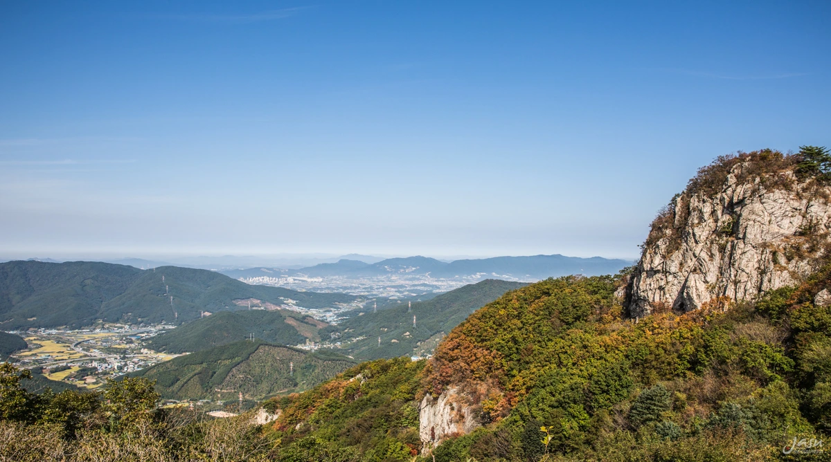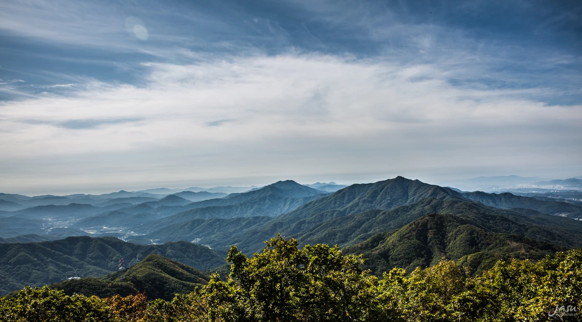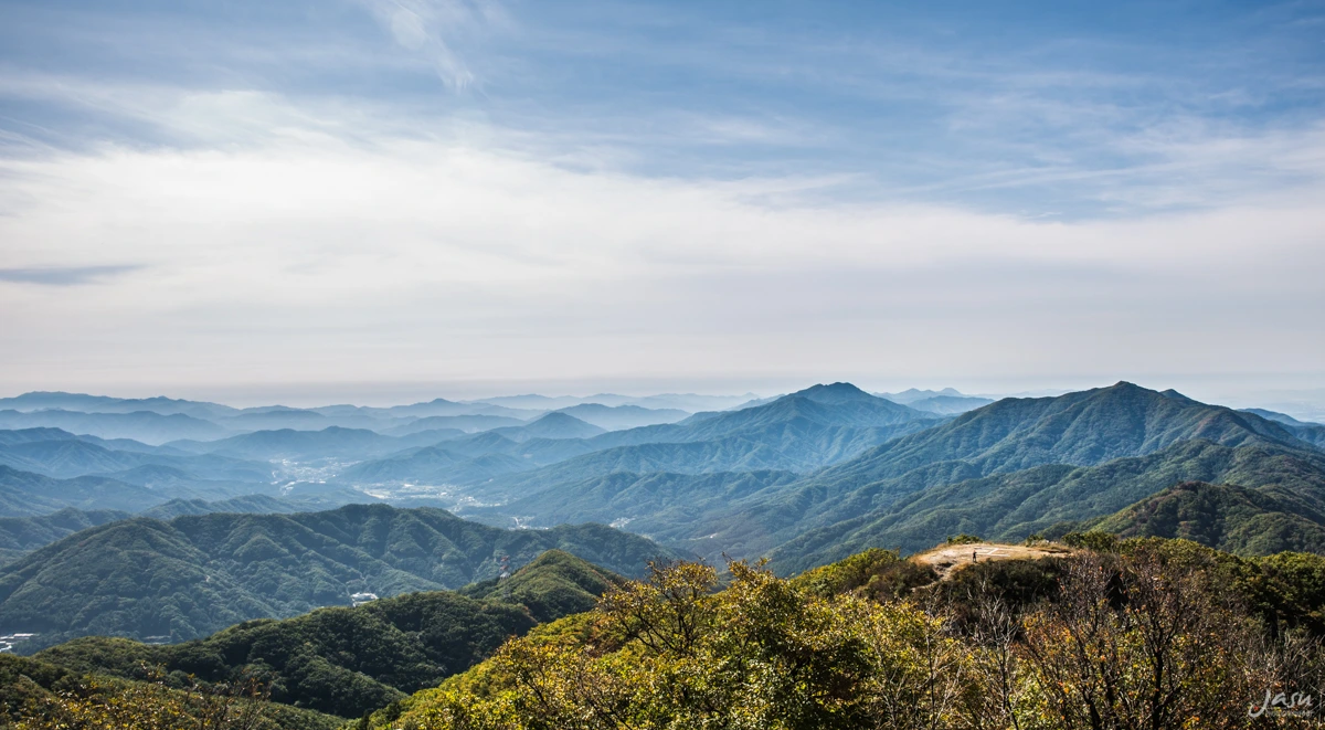 주금산 독바위에 가까워지면서 백패커 몇 분과 마주쳤다. 전날 주금산에서 비박을 하고 하산하는 분들도 있었고, 사이트를 찾아 산을 오르는 분들도 있었다. 독바위 근처 헬기장에서 바라보는 조망은 정말 압권이었다. 경기도의 명산들이 파노라마처럼 펼쳐진다.