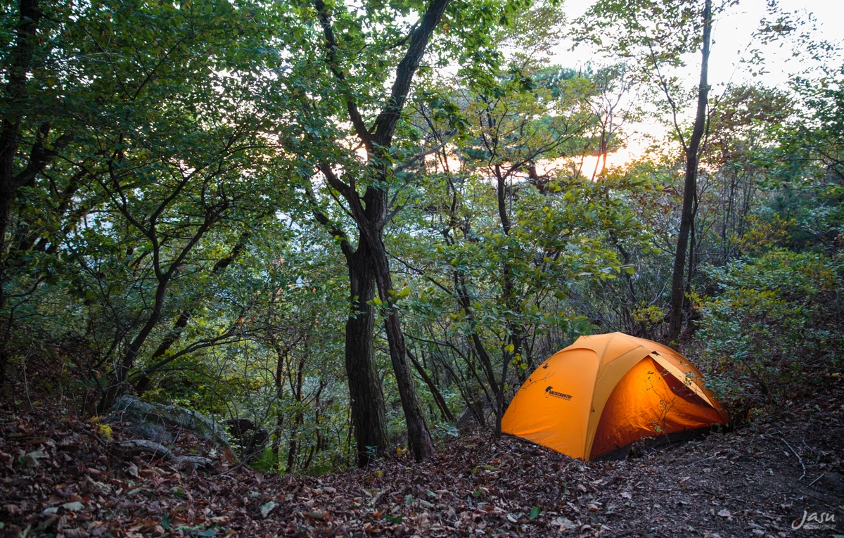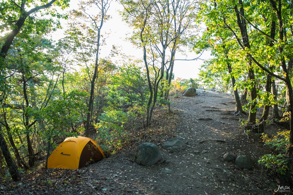 철마산 남봉에는 비박할 장소가 마땅치 않았는데 주변을 살펴보니 등산로 옆으로 움푹 파인 공간이 있었다. 나는 바닥을 정리하고 그곳에 텐트를 치기로 했다. 등산로 옆이라 다른 사람들에게 불편을 주지 않을뿐더러 길 반대편에서 부는 바람에도 영향을 받지 않을 것 같았다. 예상대로 새벽에 산바람이 거세게 불었지만, 텐트에는 전혀 바람이 닿지 않아 아늑하게 잠을 잘 수 있었다.