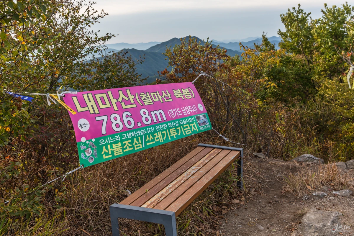 내가 찾은 곳은 철마산, 그리고 주금산이다. 철마산(711m, 786.8m)은 진전읍 해참공원 철마산 입구 출발점에서 동쪽으로 약 4.5km(남봉)와 6.8km(북봉)의 거리에 위치한(남양주시 진건면) 산으로 남봉과 북봉으로 나누어져 있다. 철마산은 현재 남봉(711m)을 정상으로 하고 있지만 남봉에서 북쪽으로 2.3km 정도 떨어져 있는 북봉(786.8m)이 실제 정상(최고봉)이다.