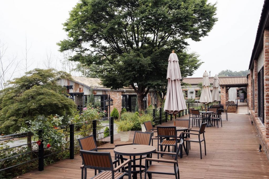 입구부터 앤티크 정원이 펼쳐졌다. 시원하게 물줄기가 솟아오르는 분수대 연못을 지나면 곳곳에 야외 테라스가 있다. 의자에 잠시 앉아 조경을 감상한다. 보기만 해도 여유로운 풍경이 유럽의 밀라노 카페에 온듯한 기분이다. 마치 오래된 별장처럼 혼자만의 시간을 갖고 싶을 때 필요했던 이상적인 아지트 같기도 하다. 밤이 되면 은은한 조명 덕분에 고급 레스토랑의 무드 있는 운치가 연출된다. 무성히 자란 크고 작은 7월의 나무들 사이로 통유리 건물이 모습을 드러냈다.