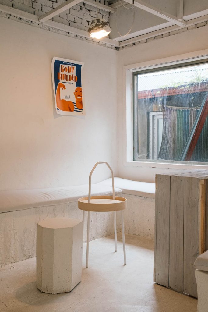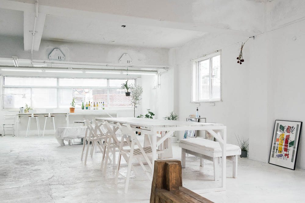 처음 이곳을 보았을 때 ‘건물 하나를 네 마음대로 해보라고. ‘해머로 스트레스 풀며 벽을 마음껏 내리쳤더니 자연스럽게 이런 모습이 완성되었다’ 해도 믿을 만큼 내부는 현장 그 자체였다. 또 바닥이며 벽이며 의자며 전부 하얀색으로 둘러싸여 있으니, 언뜻 오래된 상가가 미니멀리즘을 흉내 낸 것 같기도 했다. 친절하게 반듯한 테이블도 없고 등받이는 물론, 소파처럼 편한 쿠션감 있는 의자도 없다. 그러나 소위 ‘인싸’들이 새침한 표정으로 연신 화보를 찍어대는 핫플레이스로 열광하는 이유는 무엇일까. 공덕이라는 빈티지한 곳에서 발견한 특별함이다. 그 어느 곳도 연상되지 않는 분위기. 어쩌면 유니크 베뉴는 특별함을 넘어 소중하다. 아쉬운 점은 이런 공간이 곧 재개발로 못 보게 될지도 모른다는 것.