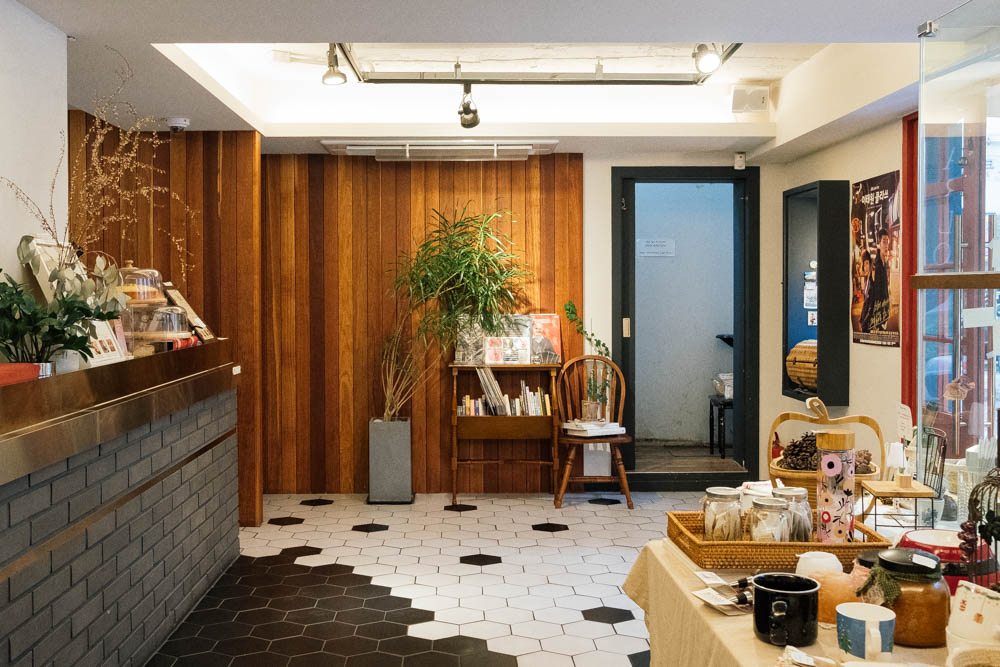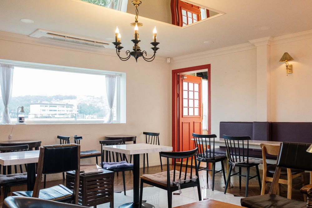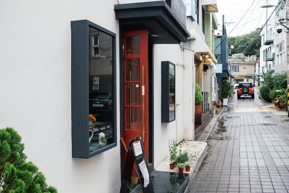 눈처럼 새하얀 건물에 예쁜 빨간색 문이 달려있다. 갤러리 같은 단아한 외관을 갖추고선 문을 활짝 열어 손님을 반겼다. 주변은 유럽풍 주택가 느낌의 카페가 모여있는 골목. 그중에서도 혼자 덩그러니 미니멀리즘한 기풍을 풍긴다. 마치 백옥 같은 피부를 가진 여인의 강렬한 붉은색 립스틱을 연상케 했다. 혹시 이 공간을 자신의 분신처럼 주인 모습 그대로를 표현한 게 아닐까. 카페 주인의 이름을 딴 간판과 소품부터 가구 하나하나까지. 수채화 그리듯 섬세하게 가꾸어진 모습이 앤티크한 분위기를 자랑했다.