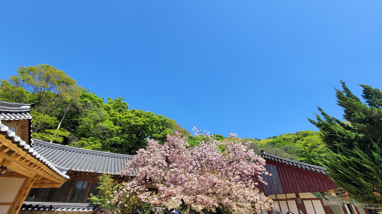 종무소를 나오며 건너편 심검당을 바라봤다. 오래전 저녁예불 알리는 종소리를 들으며 스님의 말씀을 들었던, 사랑방 같았던 곳이다. 그사이 범종각의 위치가 바뀌었고 작은 전(殿)도 생겼으며 겹벚나무들은 더 나이를 먹었다. 그때 수리에 들어갈 거라던 해우소는 여전히 그 자리에 있다. 엄마도 아직은 당신 자리를 잘 지키고 계신다. 외출이 어려운 엄마께 보여드리려고 벚꽃을 몇 장 찍어 서둘러 친정으로 향했다.
