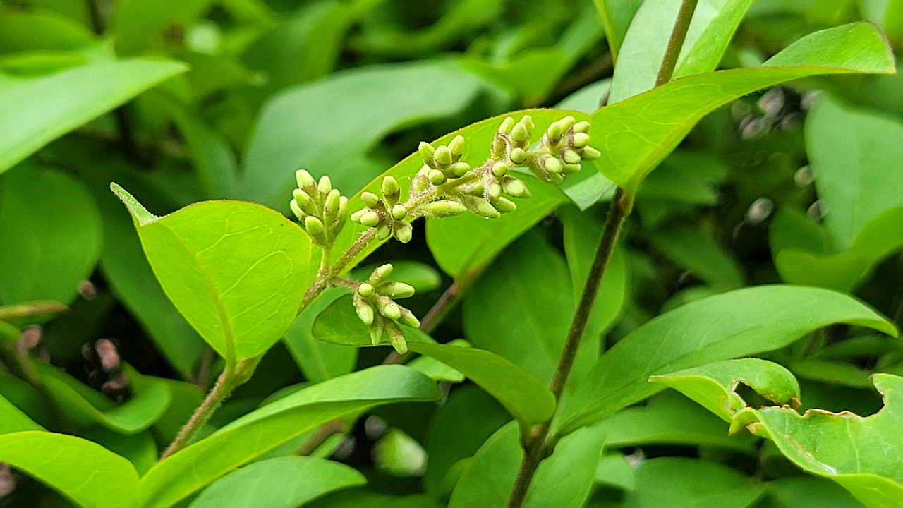 계절의 여왕이라는 오월이 맞나 싶다. 한낮이 되기도 전에 온도가 가뿐하게 26도로 올라갔다. 습도까지 높으니 조금만 걸어도 얼굴을 비롯하여 온몸에 땀구멍이 활짝 열렸다. 횡단보도 앞에서 신호가 바뀌기를 기다리는데 땀이 줄줄 흐른다. 불쾌지수가 수직으로 상승하는데, 갑자기 익숙한 향기가 맡아졌다. 옆을 보니 쥐똥나무다. 친구라도 만난 것처럼 반갑다. 지금쯤 꽃이 피었을 거라 여겼는데, 아직 피기 전이다. 그런데도 향기를 진하게 내뿜고 있다. 역시 공해에 강한 나무답다. 이름을 안 지 십오 년. 올해도 옛 마음을 기억하게 해 준 쥐똥나무, 덕분에 오늘의 더위는 견딜만하다.