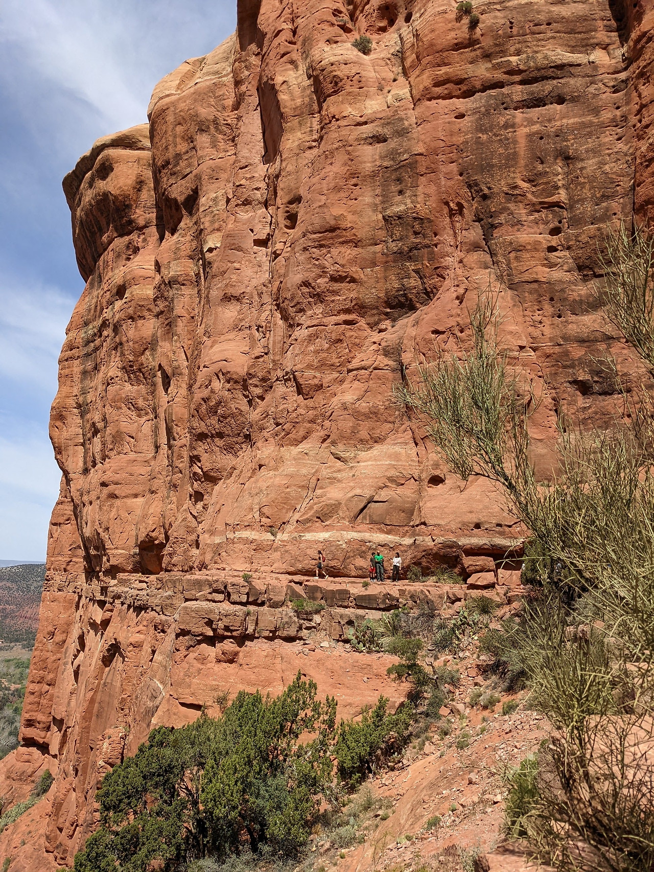 둘째 날은 관광 안내소를 들렀다. 시내는 사람들로 북적여 주차할 공간도 매우 제한적이었다. 관광지를 갈 때는 여러 노선의 셔틀버스를 이용한다. 차를 가지고 갈 수도 있지만 대부분의 사람들은 시에서 제공하는 무료 셔틀버스를 이용한다. 차를 주차하기 위해서는 Red Rock Pass라는 주차권을 구입해야 한다. 하루 $5, 일주일 $15, 일 년에 $20인데 방문객이 많아 주차 공간이 넉넉지 않았다. 둘째 날 첫 번째 목적지는 Cathedral Rock 트레일이었다. 세도나에서 가장 유명하고 붐비는 트레일 중 하나인데 경치도 훌륭하지만 Energy Vortex가 가장 강력한 곳이라고 알려져 있는 이유도 있다. 왕복 2.6km 정도의 비교적 짧은 거리지만 230미터 정도의 높이 변화가 있기 때문에 중간이상의 난이도인 트레일이다. 바위산인데 사람도 무척 많았고 어떤 구간은 매우 좁아 한 사람만 지날 수 있기 때문에 올라가거나 내려가기 위해선 줄을 서서 기다려야 했다. 바위 경사가 매우 심해 오르기 힘든 구간도 여러 곳 있어 땀을 흘리며 올라가면서 내려올 때 이경사를 어떻게 내려가나 걱정이 되었었다. 그런데 몇몇 어린아이들이 올라가는 것이 보였다. 정말 용감한 부모들이 아닐 수 없다.