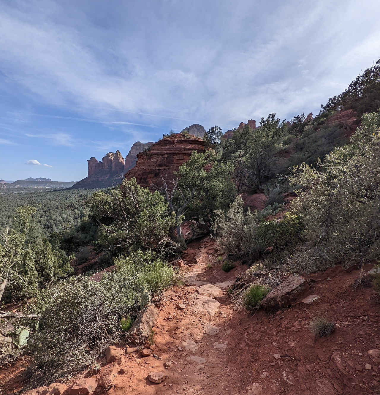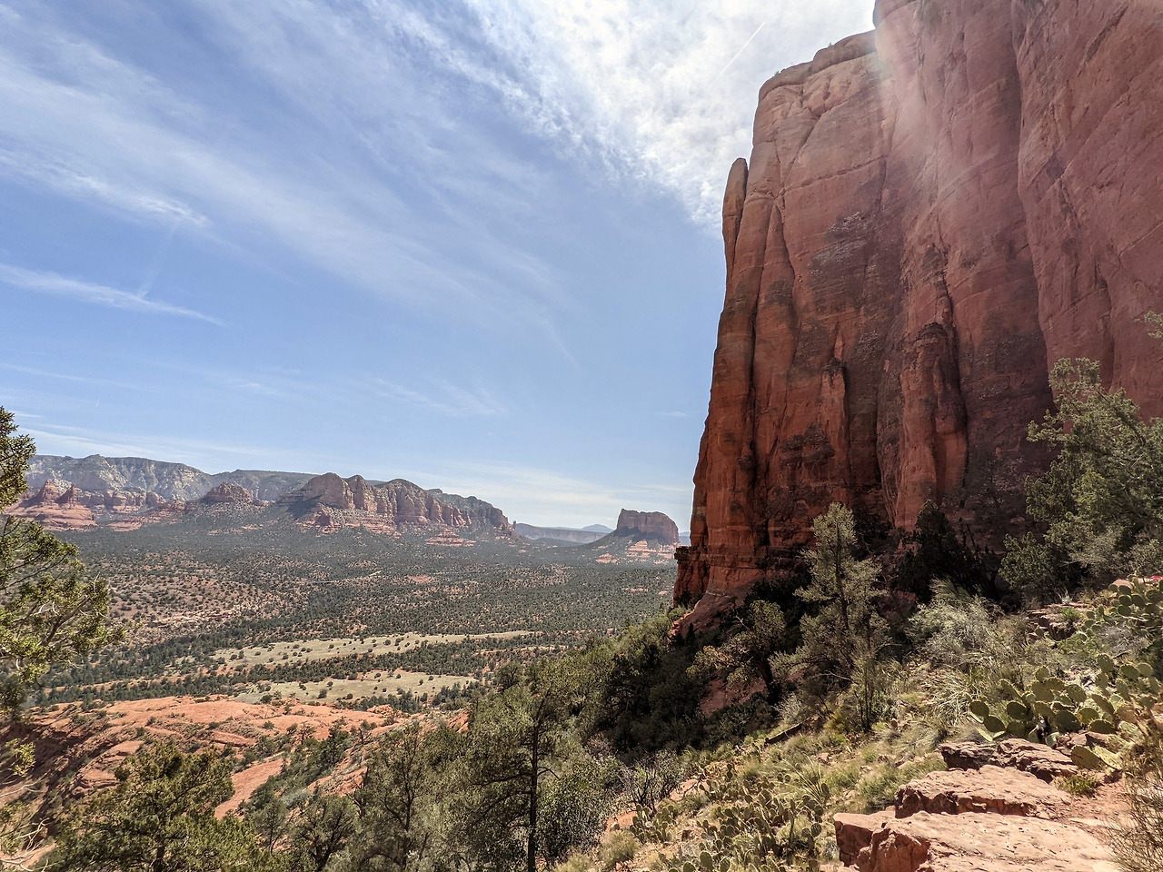 이 여행에서 트레킹을 시작한 후 2주가 지났는데 지금까지의 트레일 중에 가장 힘든 트레일이었다. 아직까지 판데믹으로 인한 운동 부족 상태에서 완전히 벗어나지 못했던 터라 힘겹게 올라갔다. 정상이나 여기나 별차이 없을 텐데 이 가파른 바위산을 굳이... 평지 트레킹도 많은데...라는 생각이 몇 번 들었지만 이왕 시작했으니 중간에 그만두는 것도 내키지 않고 하물며 저 어린애도 가는데 하면서 끝까지 올라갔다. 그런데 정상에 올라가 내려다보니 끝가지 올라오길 잘했구나 하는 생각이 들었다. 이 Cathedral Rock트레일의 초반부에 Energy Vortex를 확연히 느낄 수 있다고 많은 사람들이 경험담을 이야기했지만 불행히도 난 느끼지 못했다. 아니 별관심이 없었다는 말이 맞겠다.