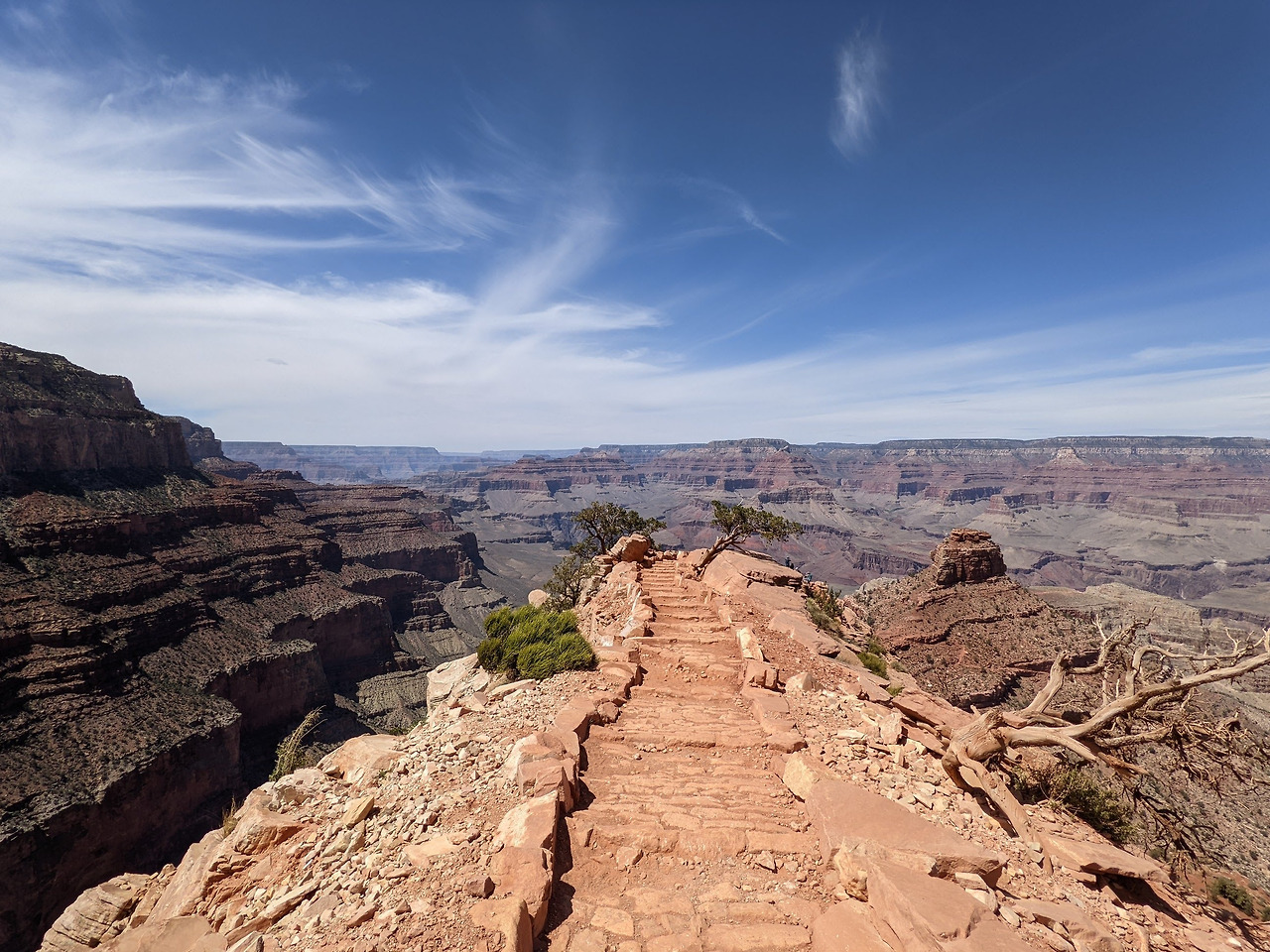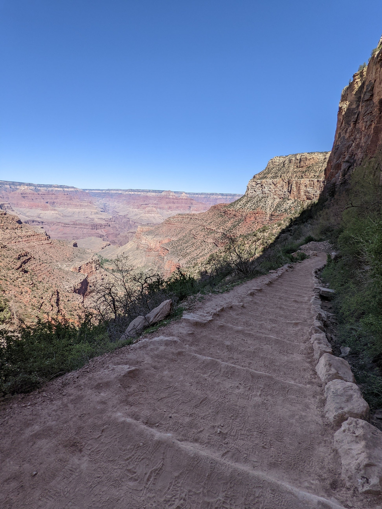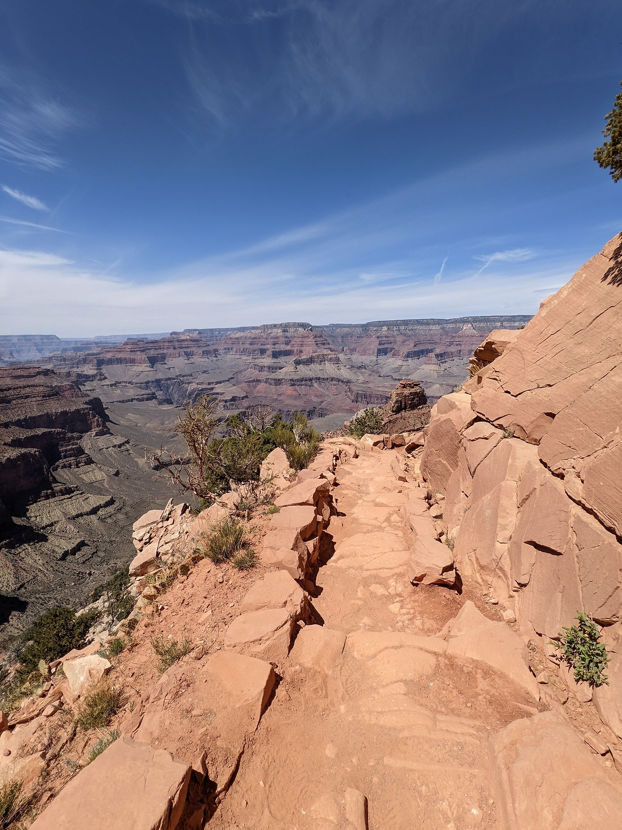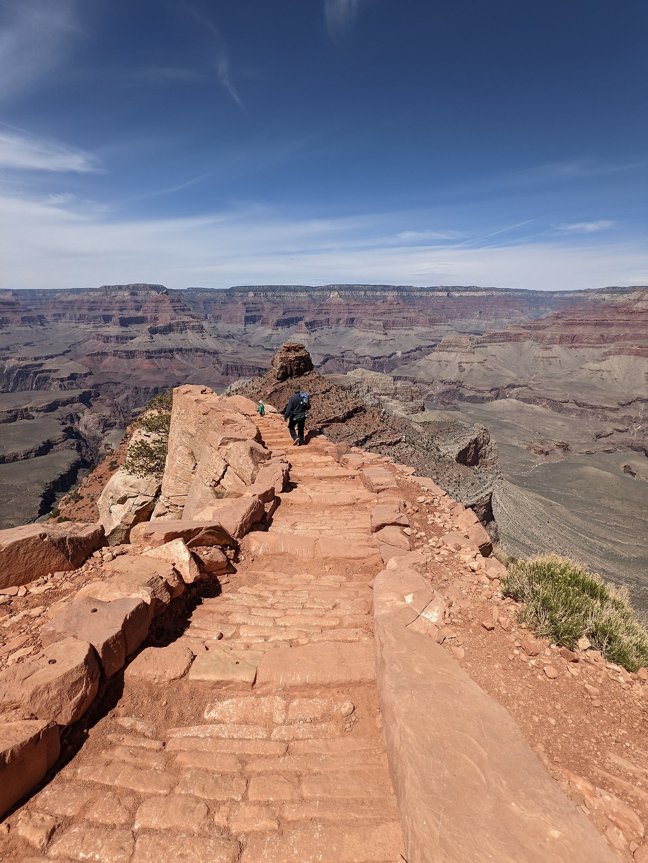 돌아가는 길은 2.4km 정도의 거리에 560미터 정도의 경사를 올라가야 했다. 보통 올라가는 시간은 내려가는 시간의 2배로 잡는데 난 2배도 더 걸리지 않았을까 싶다. 한 걸음 한 걸음 혼신을 다해 올라오면서 본의 아니게 칭찬(?)을 많이 들었다. 기를 쓰고 곧 쓰러질듯한 얼굴로 한발 한발 떼는데 그래도 멈추지 않고 계속 올라오고 있으니 한 말일 거다. 이번 여행이 끝날쯤에는 코로나 이전의 체력을 회복할 수 있지 않을까 기대해 본다. 다음에 온다면 그랜드 캐년의 바닥인 콜로라도 강까지 트레킹을 해볼 생각이다. 적어도 몇 년 뒤에나 다시 올 수 있을 테니 그때까지 체력을 기를 시간은 충분하겠지. 2019년에 John Jepkema라는 사람은 91살의 나이에 5일에 걸쳐 그랜드 캐년을 도보로 횡단했다고 한다. 90이 넘어 그랜드 캐년을 횡단하는 사람도 있는데 그랜드 캐년 바닥을 왕복하는 것쯤은(?) 60대에도 충분히 가능한 일이 아닐까.