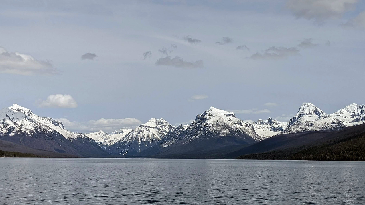 글레이셔 국립공원으로 향하는 도로에서 아주 기이한 경험을 했다. 사방이 확 트인 광활한 곳을 운전하고 있었는데 좌우 앞뒤 사방을 다 둘러봐도 아래 사진처럼 시야의 끝에 산이 빙 둘러싸고 있는 것이다. 마치 넓은 원 한복판 중심에 내가 있는데 저 멀리 산들이 원을 그리고 나를 빙 둘러싸고 있는 것처럼 보였다. 신기해서 운전을 하며 좌우, 뒤를 몇 번이나 둘러봤었다.