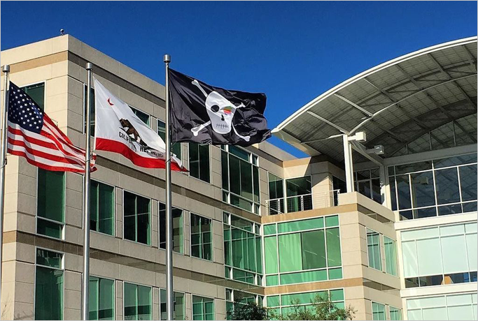 애플은 창업 40주년이 되는 2016년 4월 1일, 해적 깃발을 게양합니다. 애플의 문화를 상징하는 “해군이 될 바에는 해적이 되는 것이 낫다(It’s better to be a pirate than join the navy)”는 스티브 잡스의 정신을 다시 새기기 위해서였습니다.