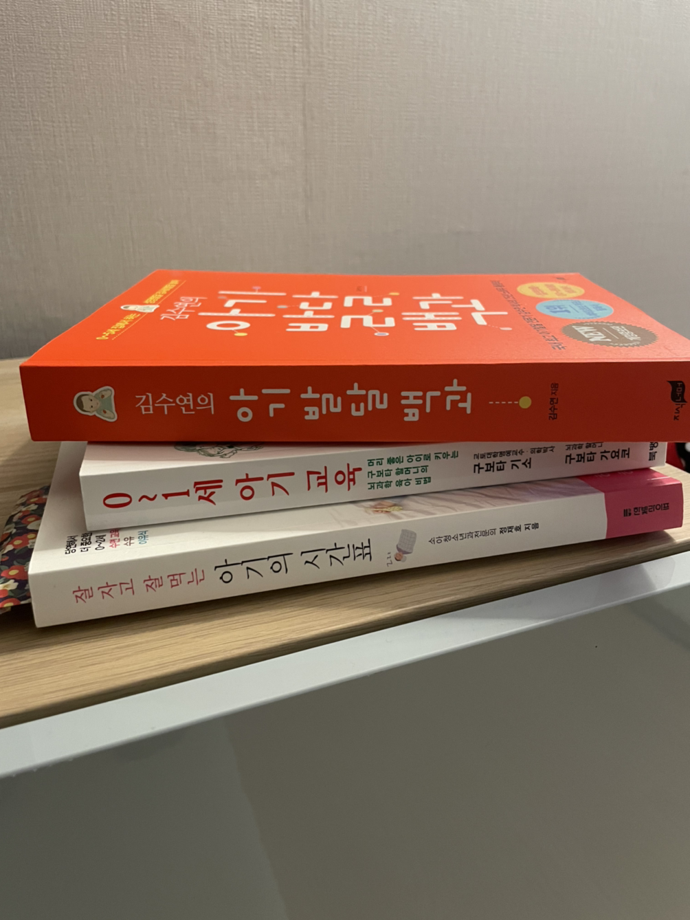 유튜브와 블로그에 이미 수많은 정보가 있지만, 정보에 대해서 만큼은 여전히 글로 보고 머리로 이해하는 것이 가장 기억에 오래 남습니다. 그래서 육아 도서만큼은 다 새것을 구매해서 보고 있어요. 중요한 부분은 줄을 긋거나 접어 놓기도 하면서 열심히 공부하고 있습니다.