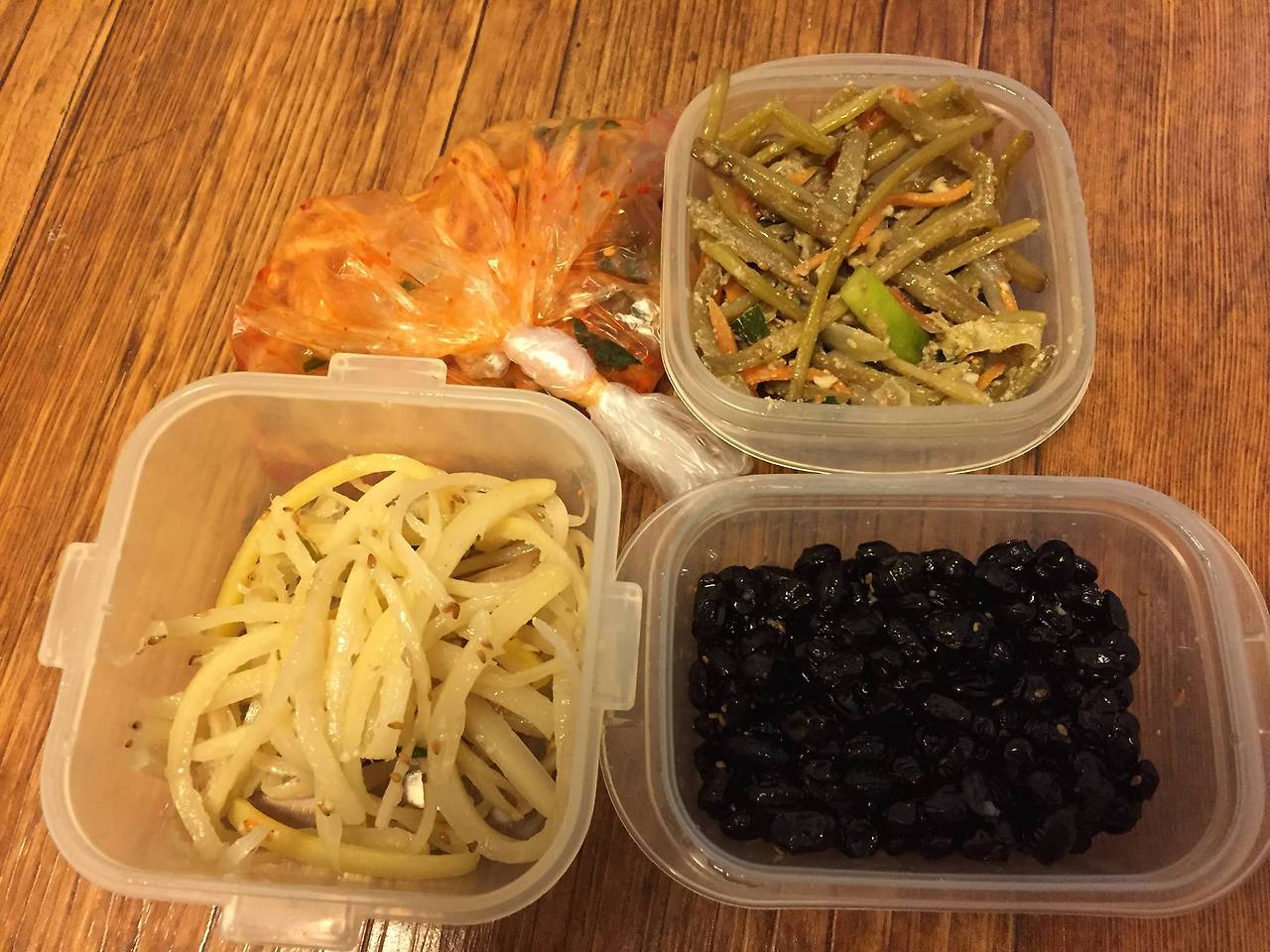 읏으시더니 나의 주문대로 반찬을 싸주시고, 거기에 열무김치까지 추가로 조금 주셨다. 나는 온 마음을 다해 “감사합니다.” 인사하고, 속으로 한 번 더 하고 반찬들을 받아들고 집에 와서 반찬통에 각각의 반찬을 담았다.