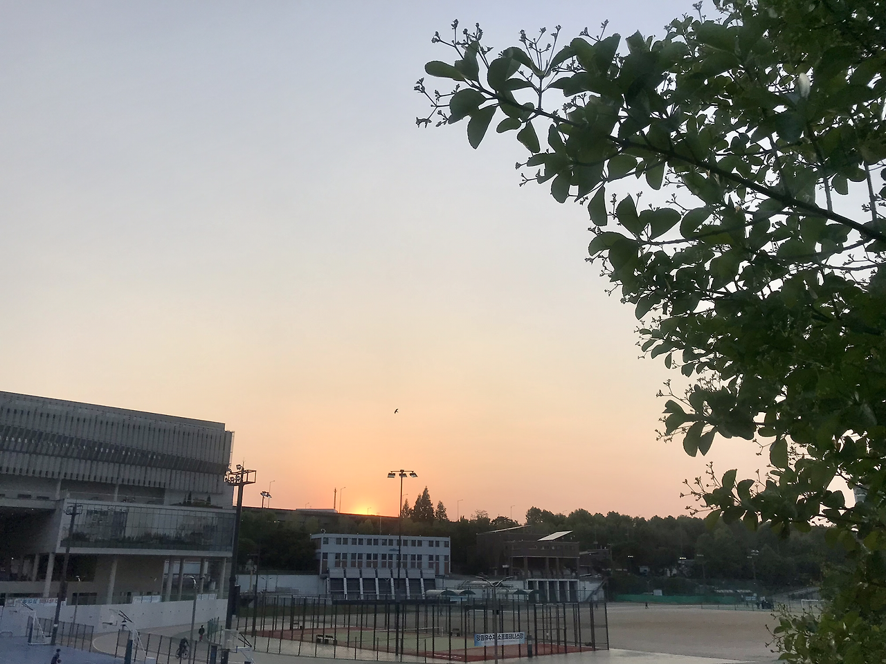 우유팩이 든 가방을 들고 집 쪽으로 향하려는데 마침 일몰 시각이 다가왔고, 오늘도 습관처럼 해지는 방향을 바라보는데, 당연히도 서쪽으로 - 유수지 쪽으로 노을이 물들고 있었다.