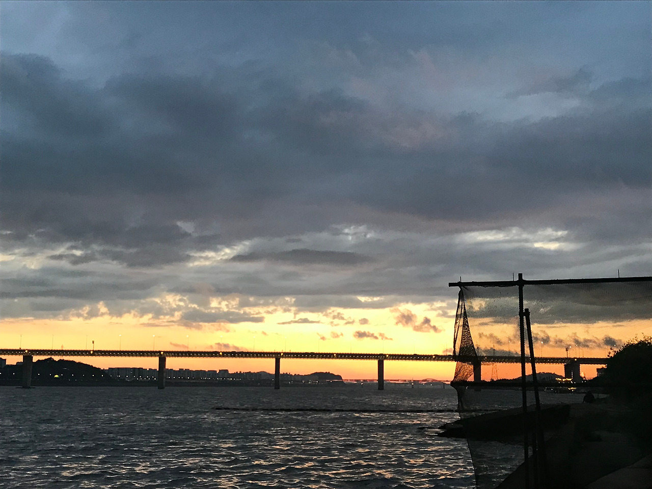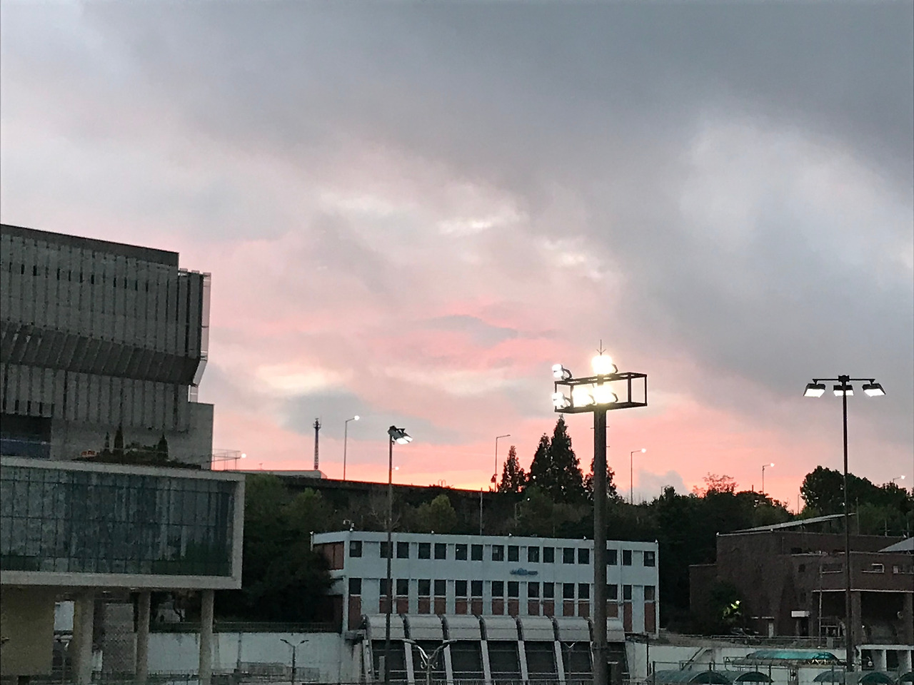 구름들 때문에 색상이 선명하진 않았고 회색 무리들과 어우러져 이색적인 모습. 주위에 사진으로 담으려는 이들이 있었다. 조금 덜 어색하게 나도 찰칵.