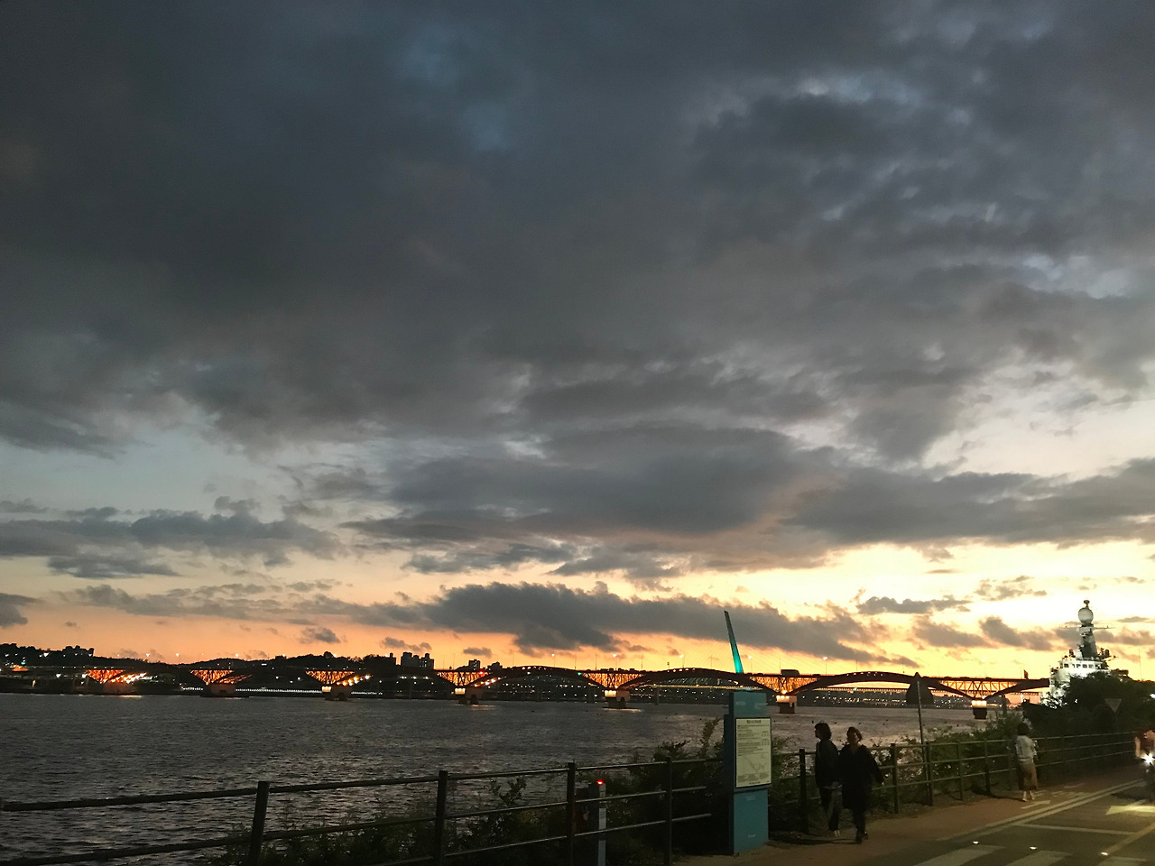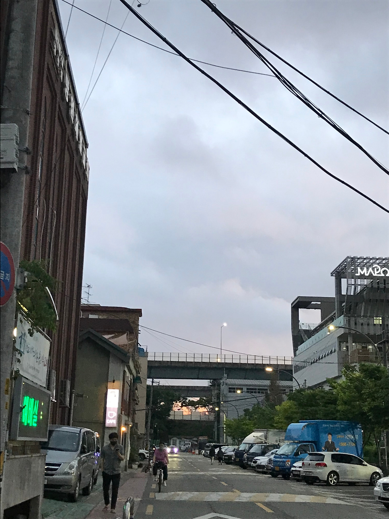 편의점 앞 쪽으로 계단을 내려가서 만끽하고 있는데 몇몇 분들도 감탄하며 성산대교 방향 하늘과 노을을 사진으로 담았다. 근데 어떻게 찍어도 눈으로 보는 것만큼은 못 되더라, 흠.