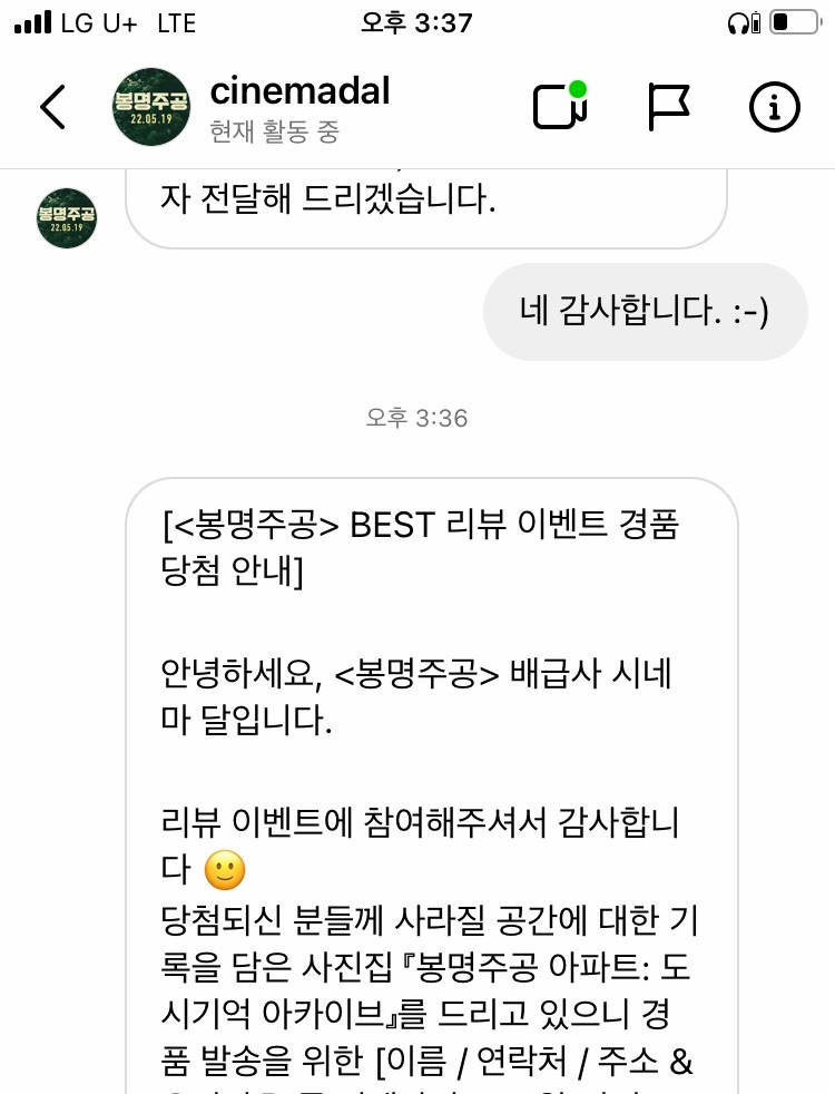 봉명주공 best 리뷰 이벤트에 당첨! 사진집 <봉명주공 아파트: 도시기억 아카이브> 받고 싶었는데. :-)