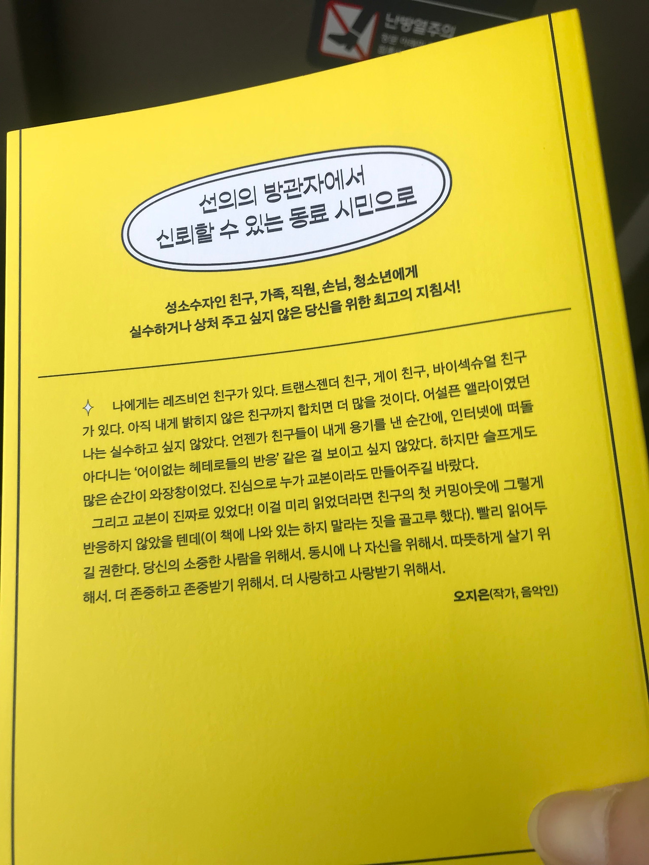 좀처럼 잠이 오지 않던 열차 안에서 최근 구매한 책을 꺼냈다. '성소수자 지지자를 위한 동료 시민 안내서'