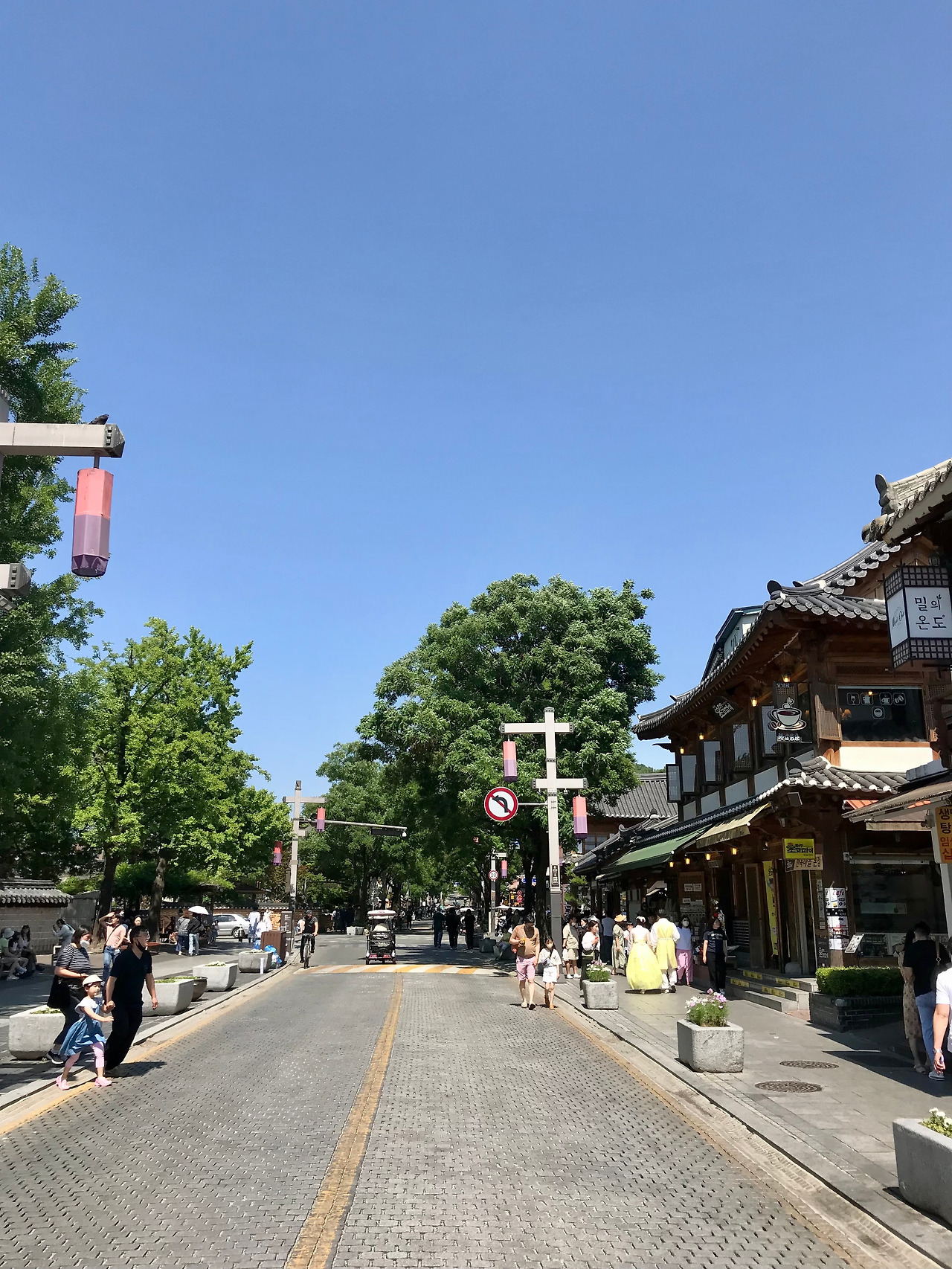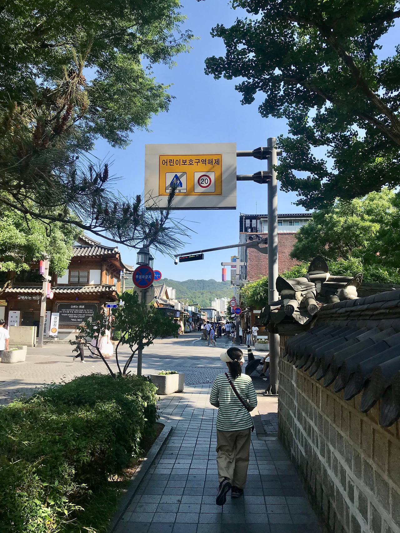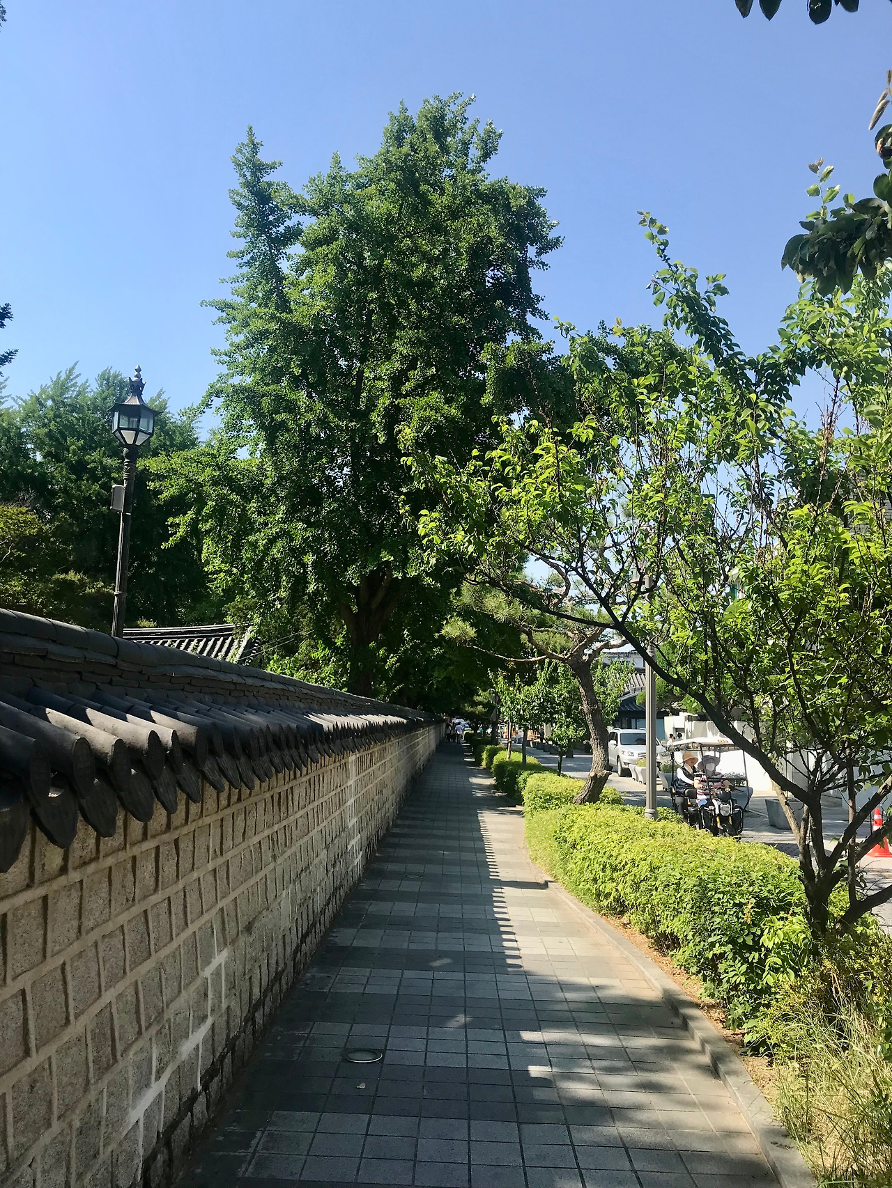 경기전 돌담길 옆을 걸으며, 게으른 오후 활동할 때 우리 노래 '동문거리' 가사를 흥얼거렸다. "한옥마을 지나 경기전 돌담길, 너를 처음 만난 그곳에서~"