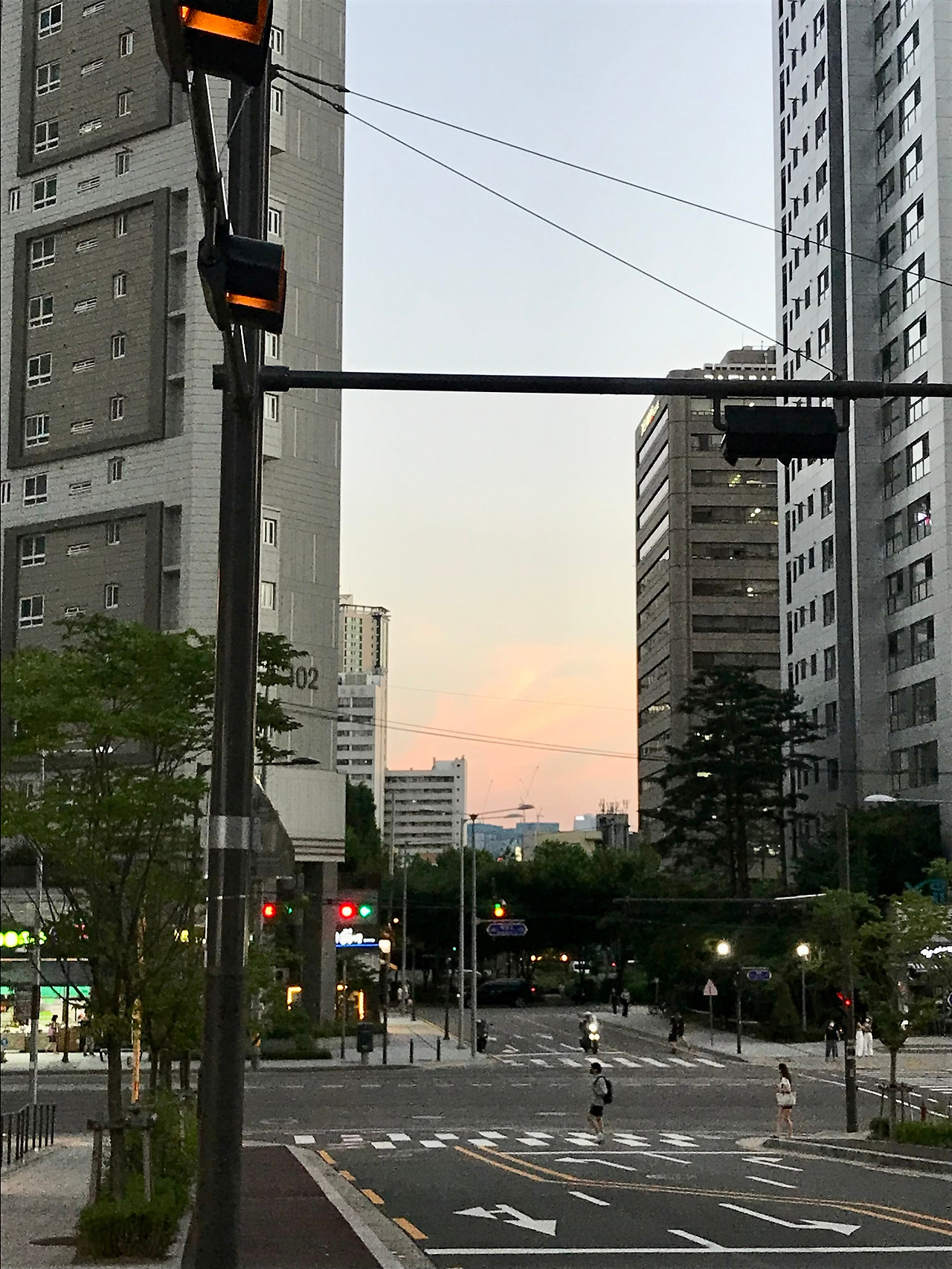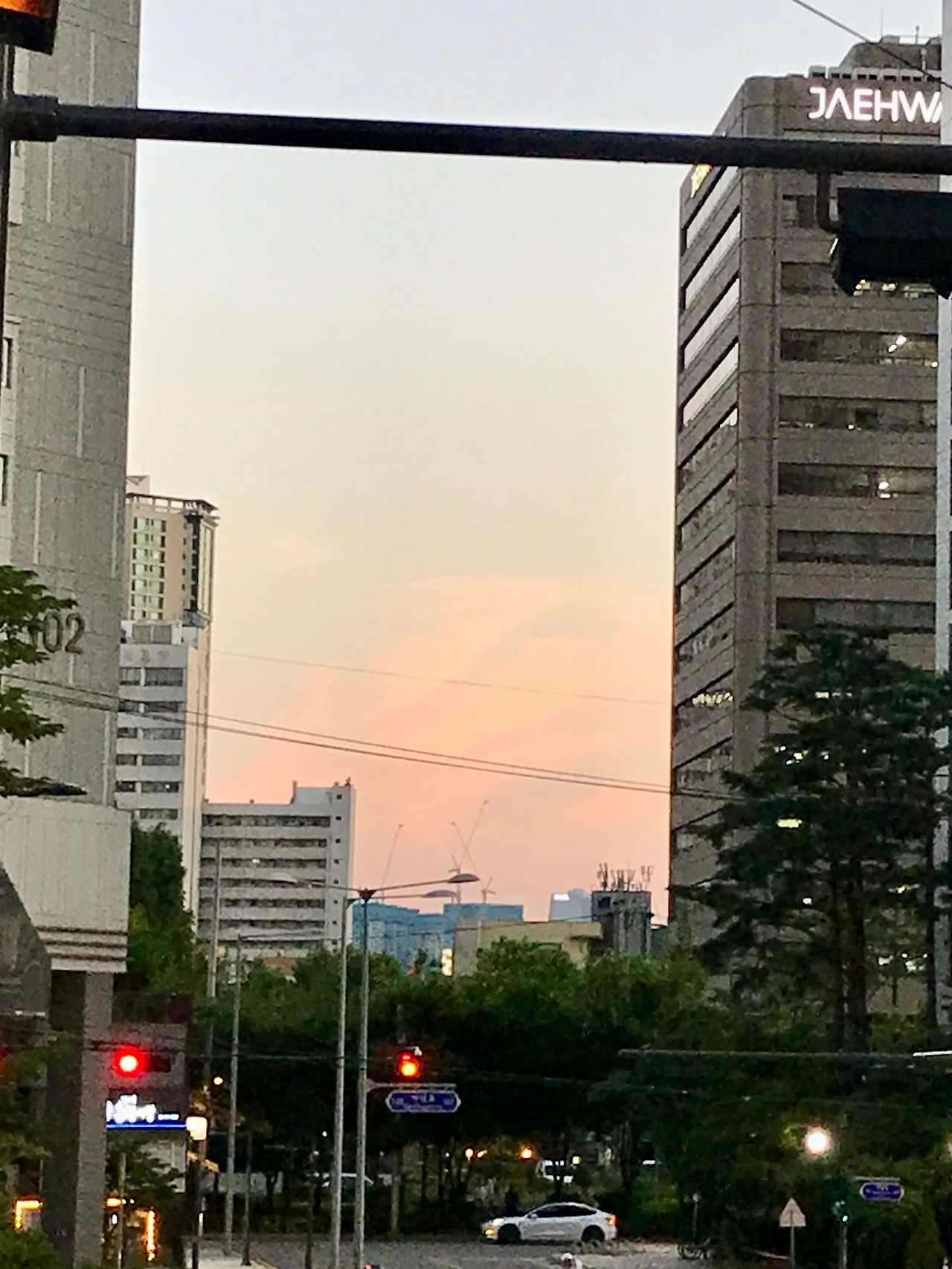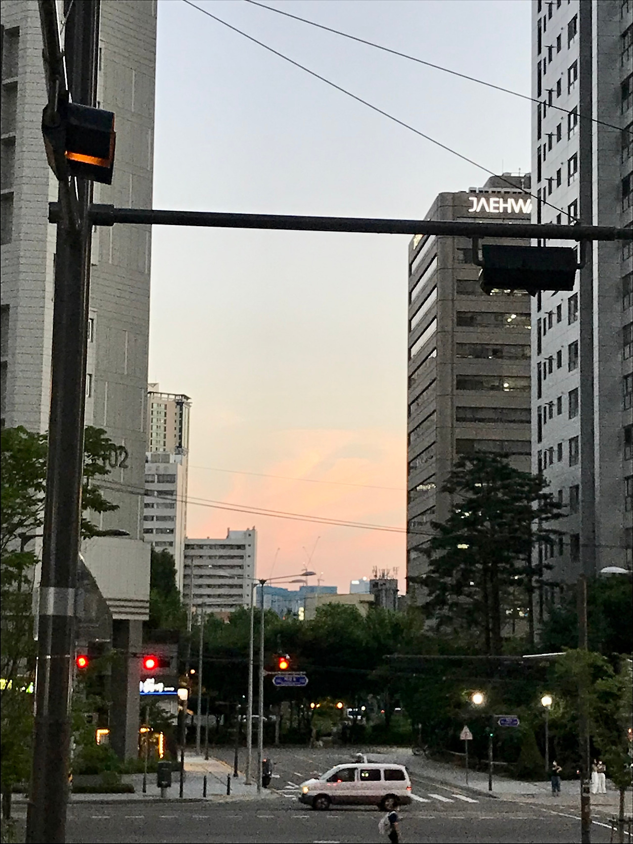 일 마치고 공덕 창업허브 언덕에서 내려오는 길, 번져오는 하늘. 이 모습이 너무 멋져서, 눈 속에 마음 속에 들어와서, 가던 길 멈추고 휴대폰 카메라로 찰칵찰칵.