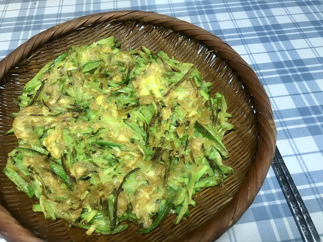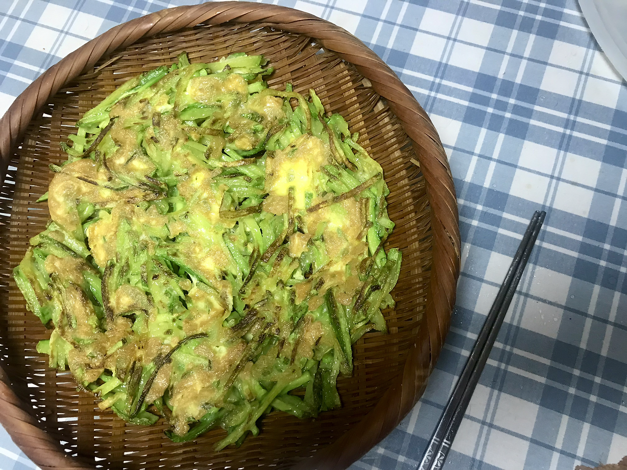 엄니 시골집 텃밭에 호박이 과다 생산되어, 소비 촉진이 필요하다. ㅎㅎ 호박을 잘게 썰고 튀김가루 약간, 거기에 계란을 풀어 부침개로 저녁식사-