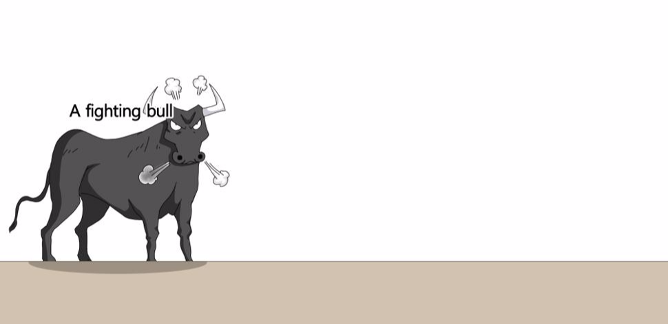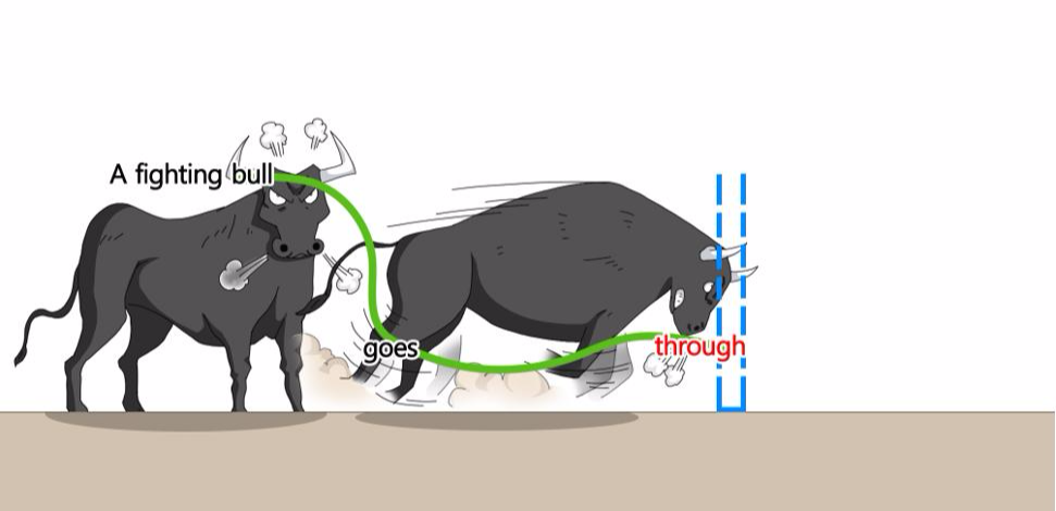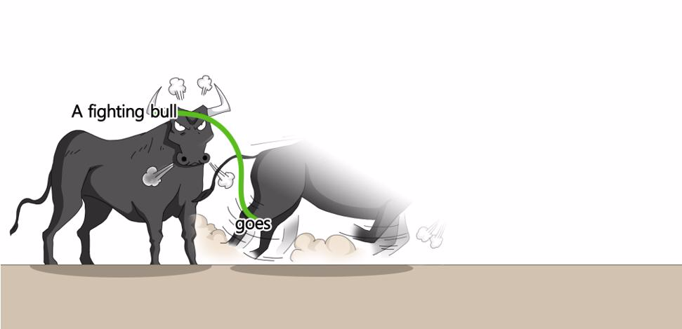 주인공인 투우(a fighting bull)의 움직임을 순서대로 단어를 배열한다고 생각해 보면,