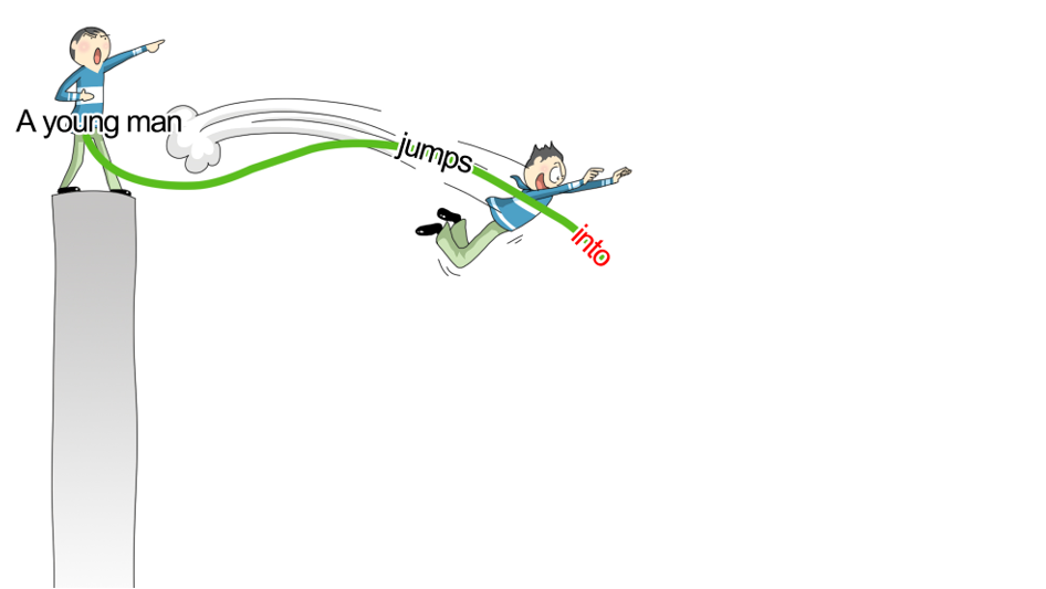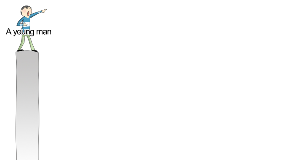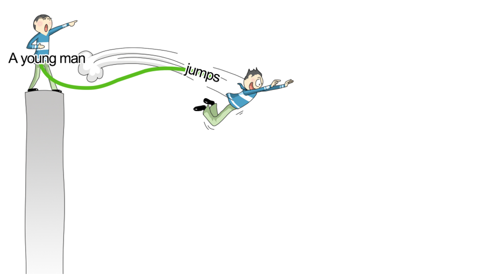 주인공인 한 젊은이로부터 시작해서 움직임을 순서대로 한 단어, 한 단어 나열해 가면 말이 된다.