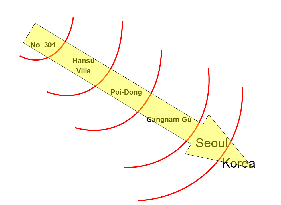 I live at No. 301, Hansu Villa, Poi-Dong, Gangnam-Gu, Seoul, Korea.