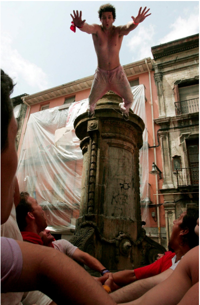 다음은, "한 젊은이가 친구들 팔들 속으로 뛰어내리는 장면"이다.