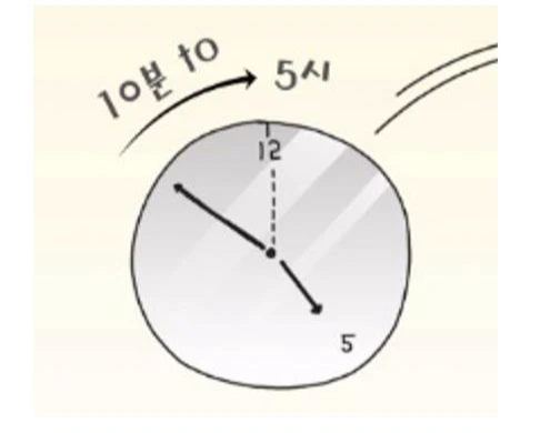 시곗바늘의 움직임을 기준으로 하면, 10분을 앞으로 나아가면 5시가 된다.