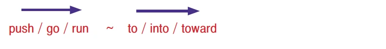 주어에서 나오는 힘이 미는 힘(push)이 거나 주는 힘(give)이거나 앞으로 전진하여 가는 힘(go) 또는 달려가는 힘(run) 다음에는 통상적으로 앞을 향하는 전치사 to, into, toward와 같은 것들이 오게 마련이다.