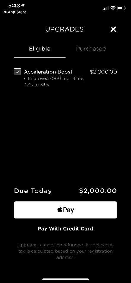 부스트 기능을 앱에서 구매하면 자동으로 소프트웨어가 업데이트되고 차 가속이 이내 빨라진다. 테슬라 차는 전자기기다. (출처: https://www.teslarati.com)