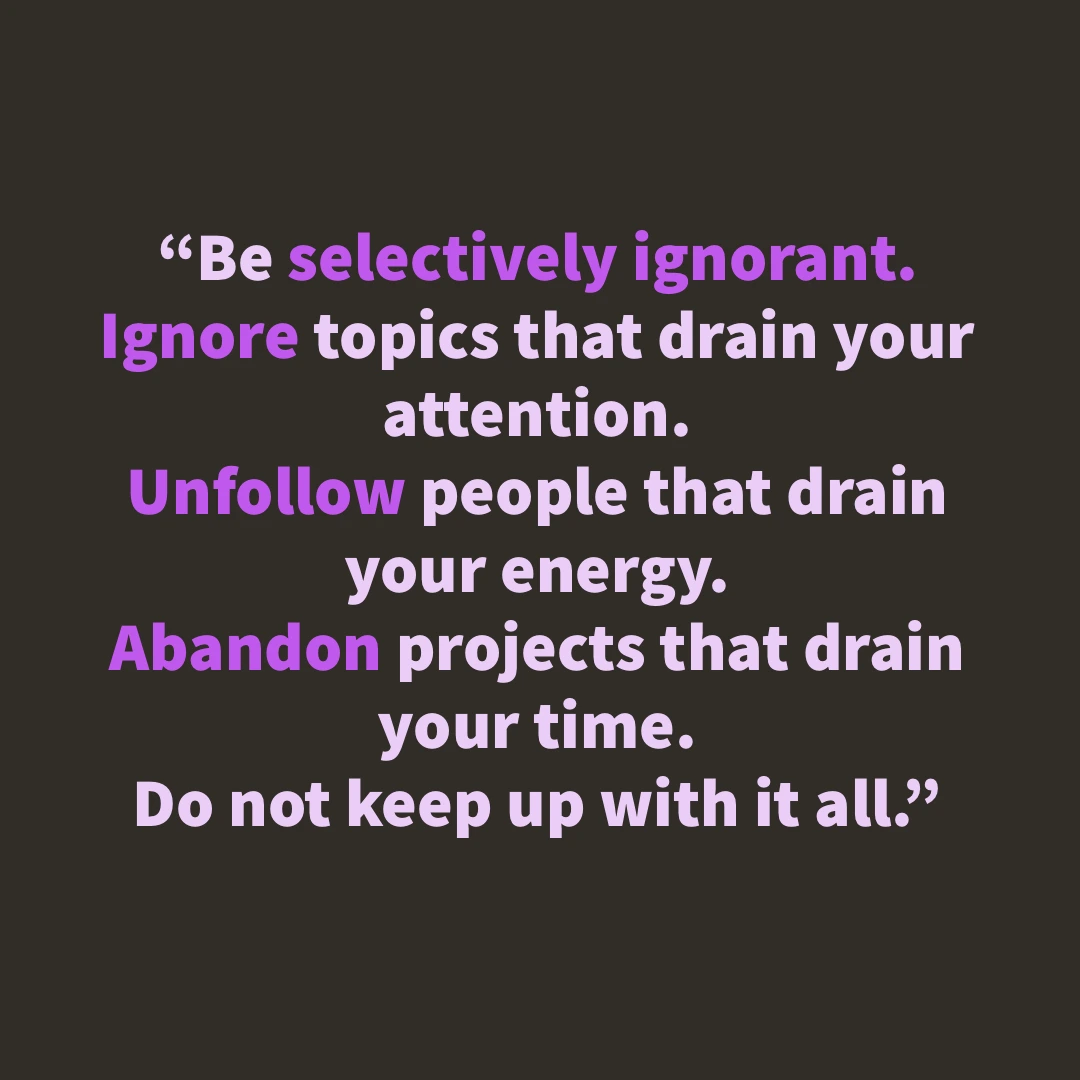 우리는 더 자주 무지하기를 선택함으로써 더 현명해질 수 있다. 남들이 중요하다고 하더라도 내게 하찮은 일이라면 당당하게 무지해도 괜찮다. 그래야만 한다. 덜 중요한 일에 관심을 끄는 것도 연습이 필요하다. 그런 연습은 우리가 더 중요한 일에 자원을 집중할 수 있게 만들어 줄 것이다.