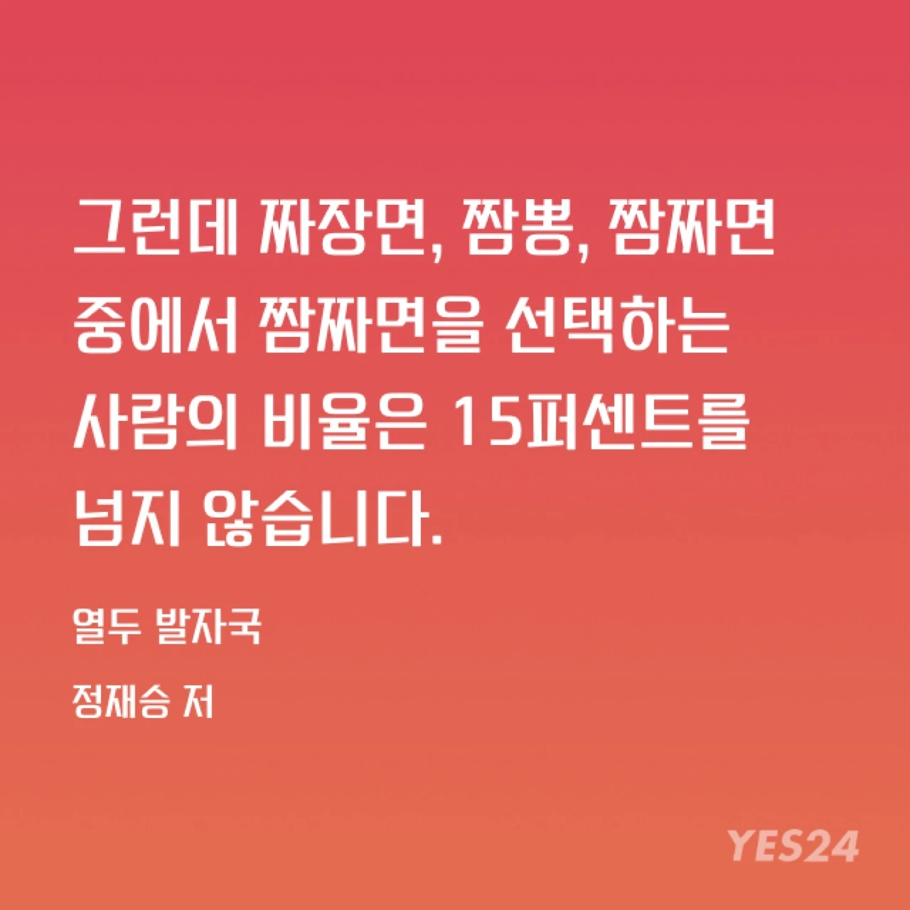 (배달의민족은 이를 실제 데이터로 확인할 수 있는 짬짜면 배달 주문 데이터를 가지고 있지 않을까. 있으면 한번 분석해 보고 싶다.)