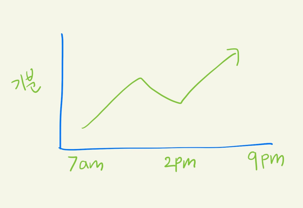 긍정적 기분은 오전에 올라갔다가 오후에 떨어지고 저녁에 다시 올라간다.
