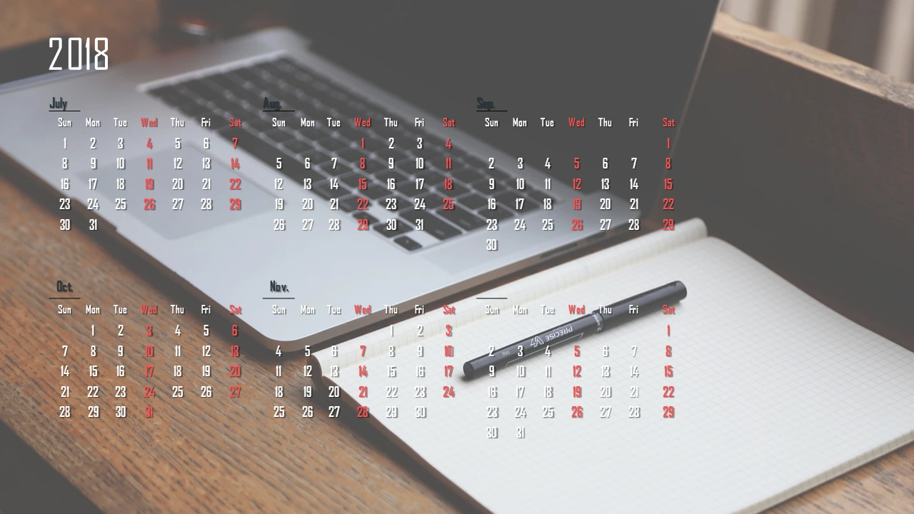 이렇게 우리 주말은 남들처럼 토·일이 아니라 수·토로 정해졌다. 아내가 재빨리 달력을 만들어줬다. 수요일과 토요일이 빨간색인 남들것과는 다른 달력을. 이 달력을 가지고 우리들만의 방식으로 앞으로 1년을 살아보려고 한다. 좀 하다가 질리면, 무슨 요일이든 맘대로 7일 중 이틀 쉬는, 유동적인 주말도 실험해 봐야겠다.