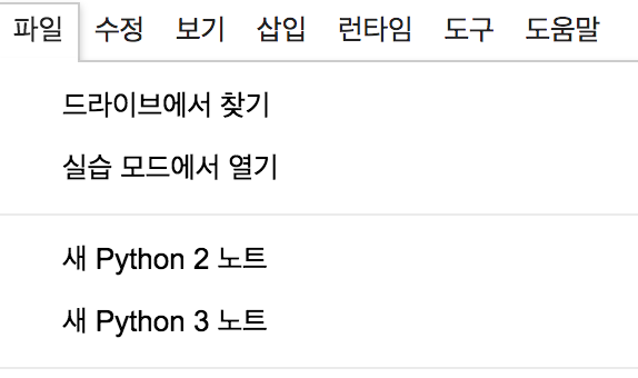 새 노트북을 만들 때, 파이썬 2와 파이썬 3 중에서 파이썬 버전을 선택하여 문서를 작성할 수 있습니다.