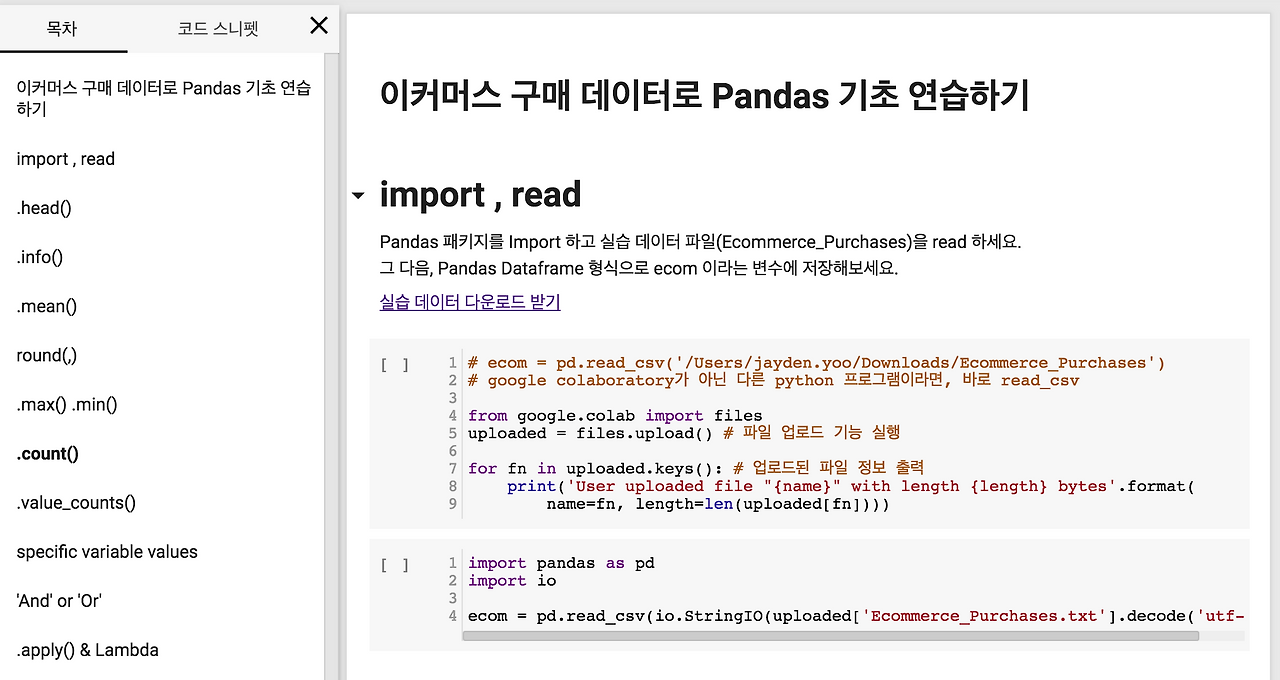 Google Colaboratory Python Pandas 기초 실습 1 보러가기