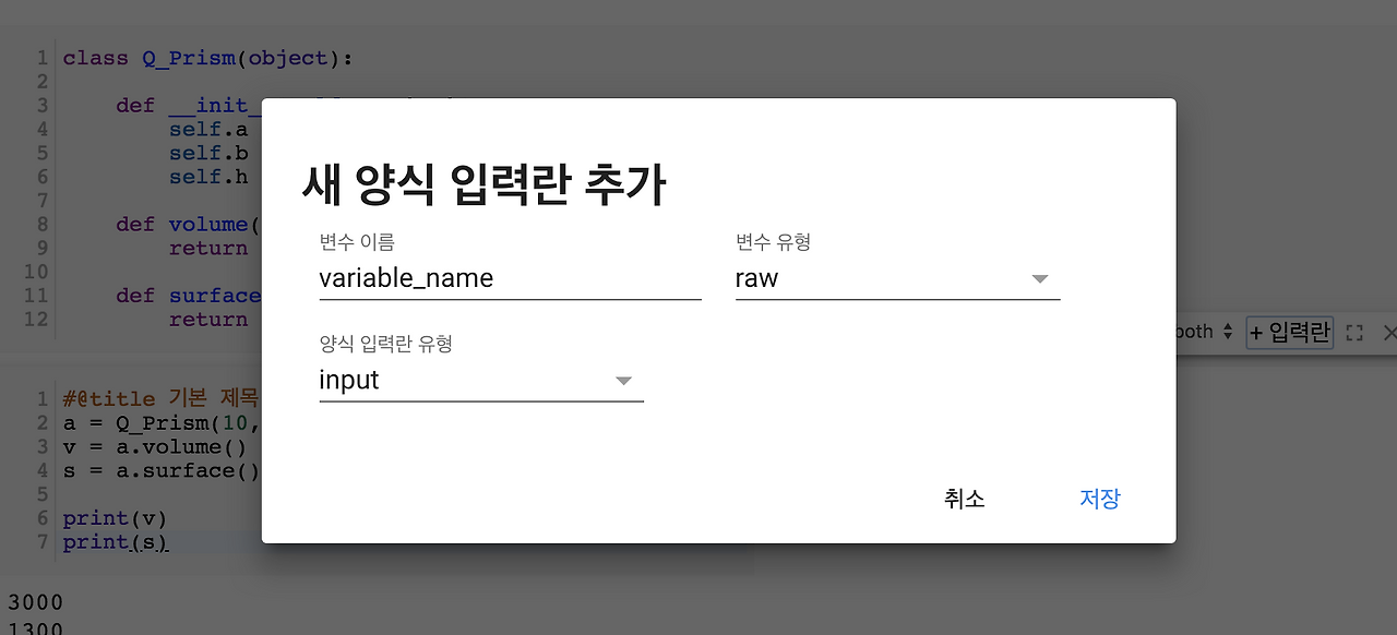 바로, Google Colaboratory 노트북에서 입력폼 사용하기 입니다.