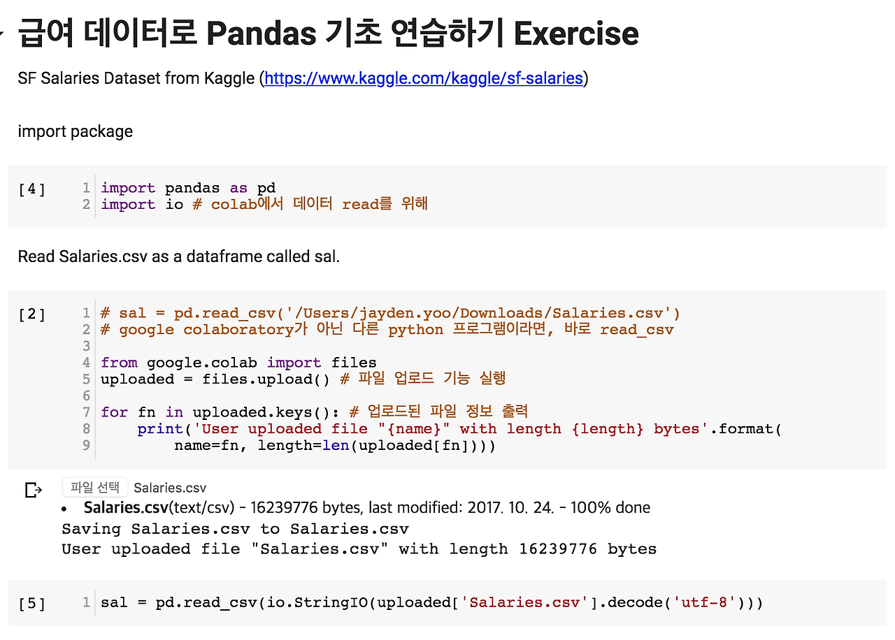 Google Colaboratory Python Pandas 기초 실습 2 (급여) 보러가기