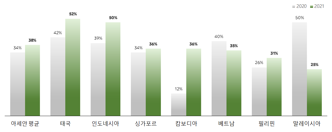 태국 레스토랑에서는 스마트폰으로 QR코드를 스캔해 결제하는 이들을 흔히 볼 수 있습니다. 요즘에야 한국에서도 간편 결제를 쓰는 이들이 늘어나고 있으나 신용카드에 익숙한 우리에게는 매우 낯선 풍경이었습니다. 스마트폰으로 QR코드를 스캔하면 자신이 이용하는 은행 앱을 활용해 레스토랑에 간편하게 송금합니다. 태국은 이제 아세안 국가 중에서도 QR코드 결제를 가장 많이 사용하는 국가가 되었습니다. 비자(Visa)의 리서치에 따르면, 2021년 태국의 QR 코드 결제 사용률은 52%이며, 그 뒤로 인도네시아 50%, 싱가포르 36%, 캄보디아 36% 순이었습니다.
