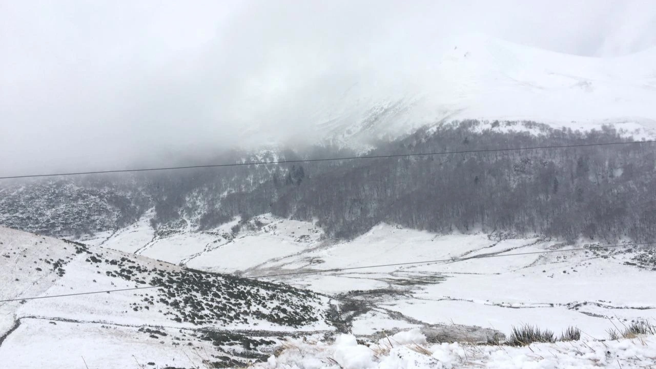 1유로의 초가 기적을 일으킨걸까. 운이 좋게도 제설차를 만나 꽁무니를 졸졸 따라서 산을 내려올 수 있었다. 제설차가 바로 앞에 있으니 그제야 눈에 들어오는 눈 쌓인 절경.
