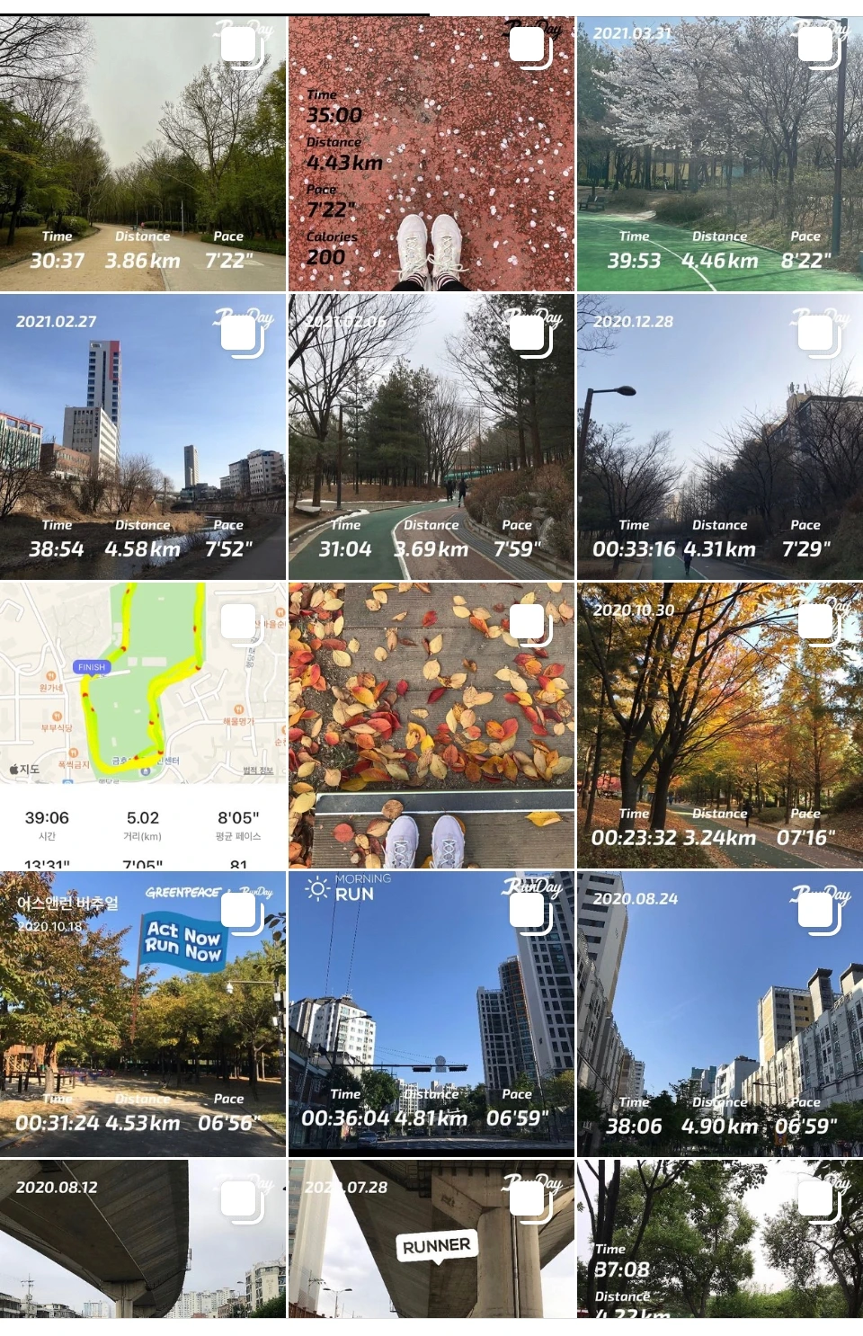 달리기 루틴을 가지게 하는 데 큰 도움을 준 “런데이 앱”에서 속칭 런저씨 역시 “걷지 말고 느리더라도 뛰라고” 나의 달리기를 격려한다. 달리기를 시작한 지 이제 겨우 1년으로, 아직도 달리기를 할 것 인지. 어디에서 달리기를 하고 몇 분을 할 것인지, 그리고 달리는 동안에는 힘들어서 중도 포기할 것인지 아니면 목표 거리까지 달릴 것인지를 끊임없이 생각한다. 그 외에 일상에서 나의 뇌를 90% 차지하고 있는 고민거리들은 적어도 달리는 동안에는 잠시 사라진다. 그렇게 달리기 자체에 집중하고 도전 거리와 페이스를 달성하기 위해서 몸을 움직이다는 것은 생각보다 큰 즐거움을 준다. 그리고 내일 다시 달리기를 하기 위해서 근력 운동을 하고 식단을 조절하고 일찍 잠자리에 드는 성실함을 선사하였다. 올 해에는 하프 마라톤 참가를 목표로 한번 달려볼까!!